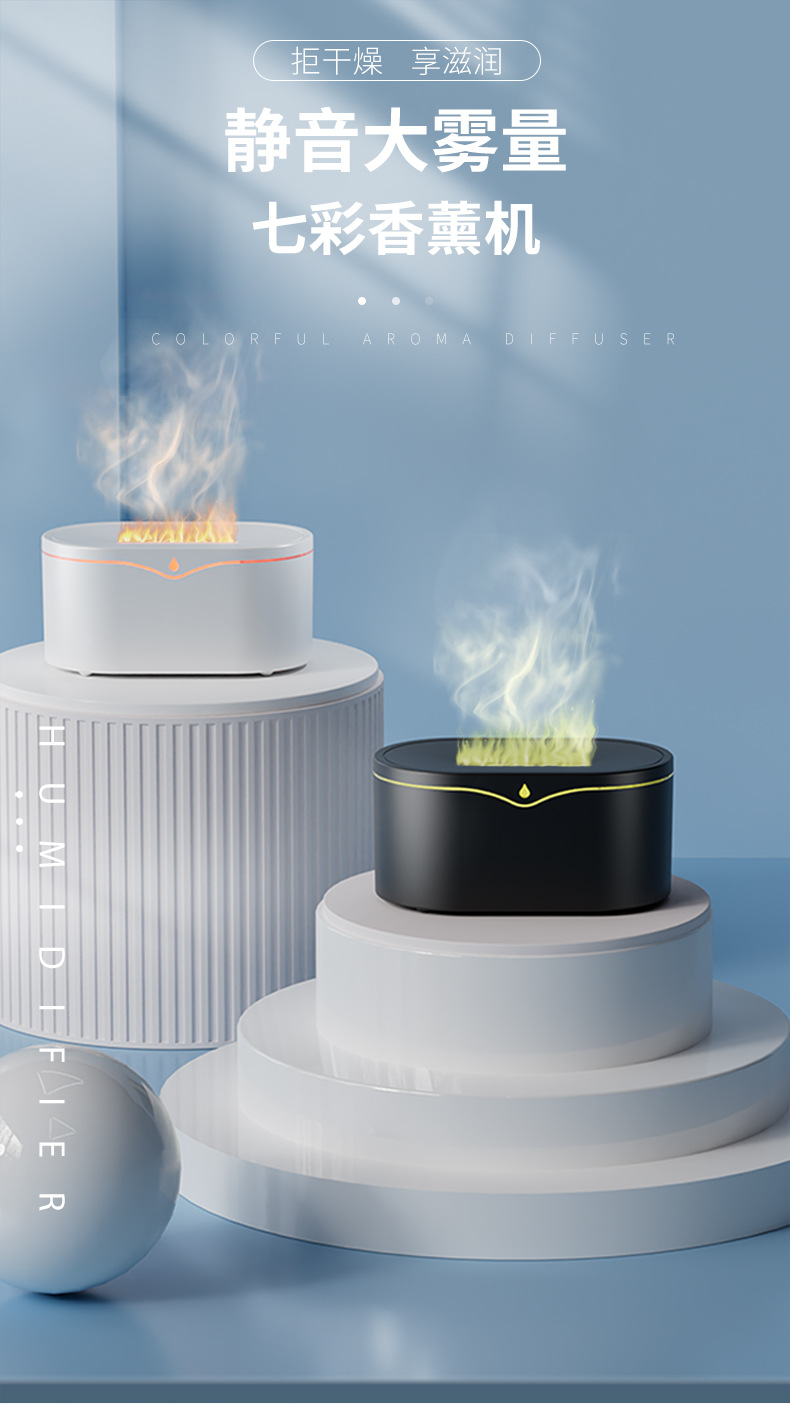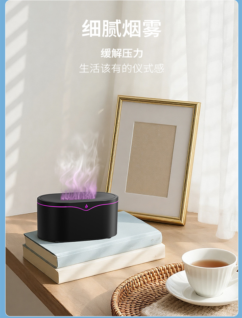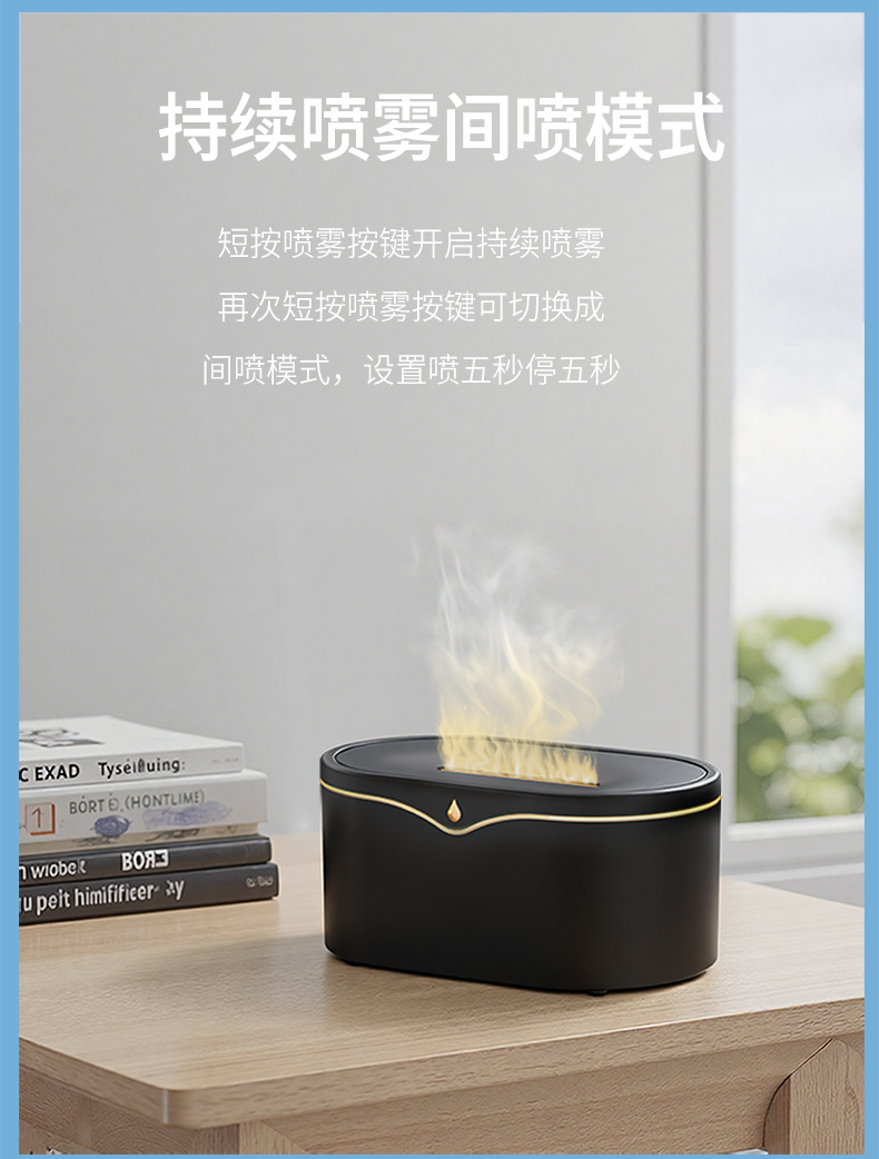 跨境亚马逊3d仿真火焰香薰机 桌面家用氛围超声波自动喷香加湿器