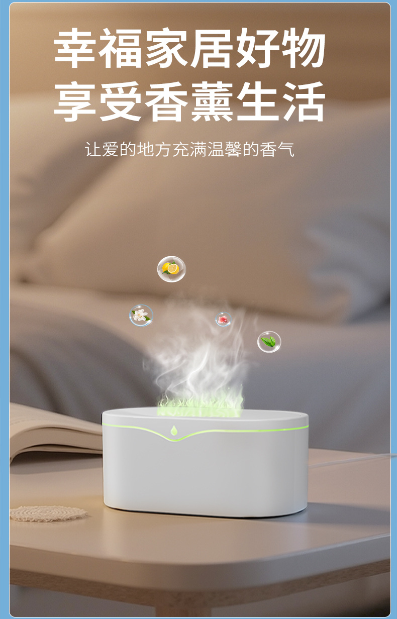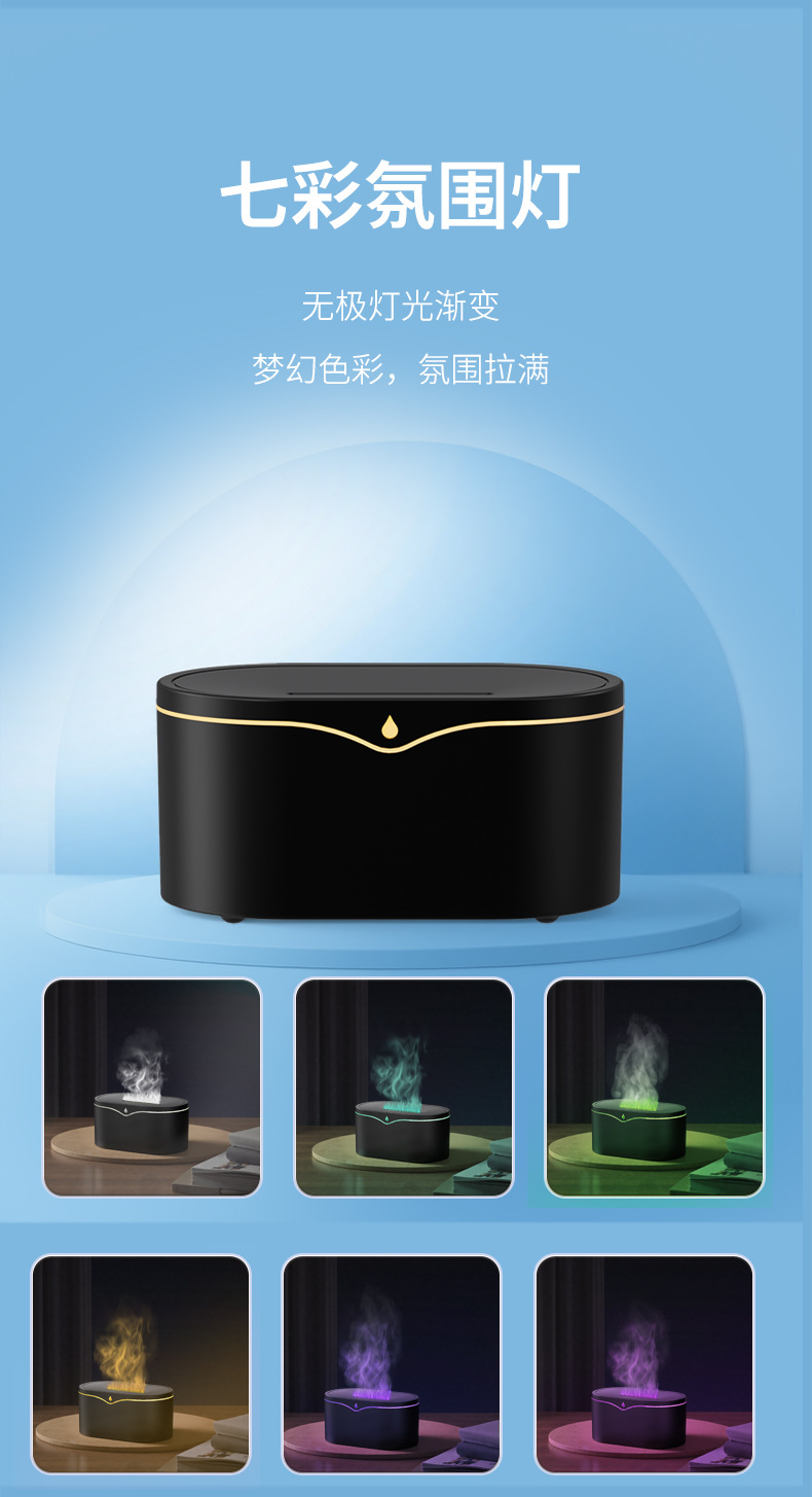 新型シミュレーション炎アロママシン家庭用寝室小型デスクトップカラフルな雰囲気ランプ霧量空気加湿器