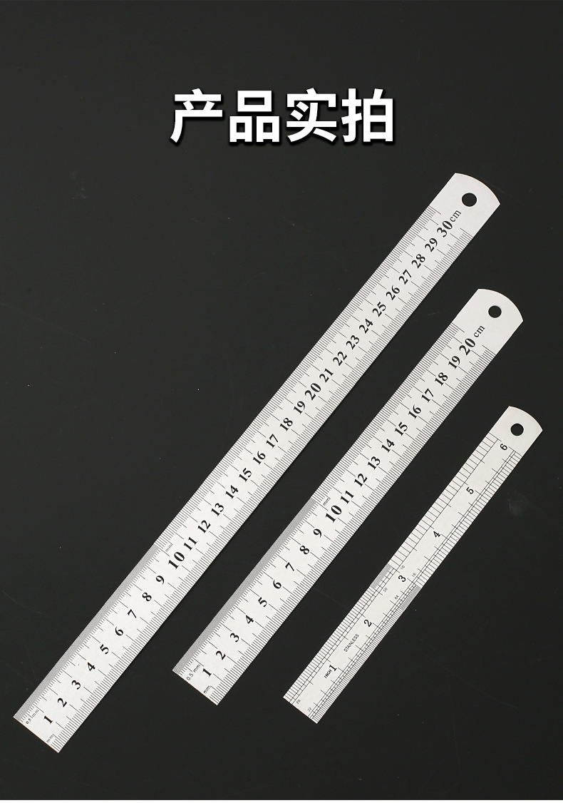 中性钢直尺批发 高精度无标钢直尺公英制双面钢直尺文具尺钢板尺