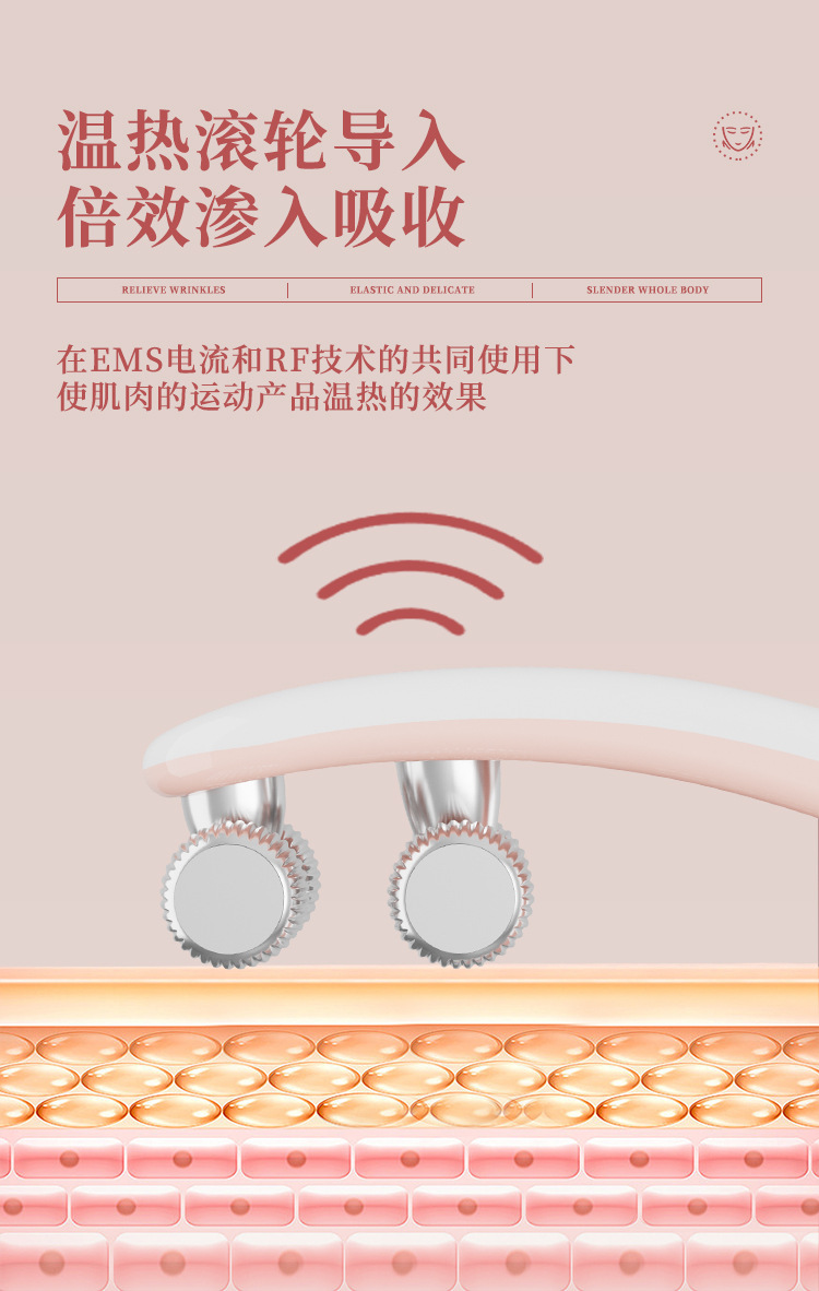 跨境瘦脸滚轮美容仪家用提拉紧致EMS脉冲按摩双下巴小v脸部按摩仪