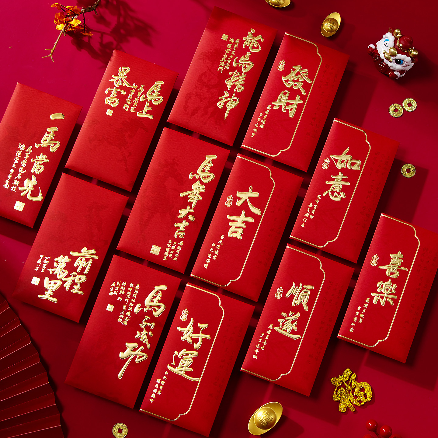 颜色 马年烫金红包,马年大吉,新年快乐,马到成功,财神驾到,吉祥如意