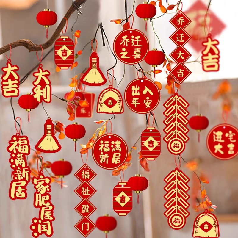 2024種類の喬迁の喜装飾小提灯ストラップ発財樹上緑植新居引っ越し式用品