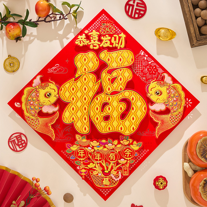 2026年馬年新年福字門飾り、春節装飾、立体型玄関飾り、壁飾り、春節用品卸売
