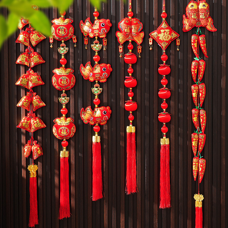 2025年新年装飾蛇年春節爆竹串唐辛子串ストラップ新年福字お祝い飾りセット用品