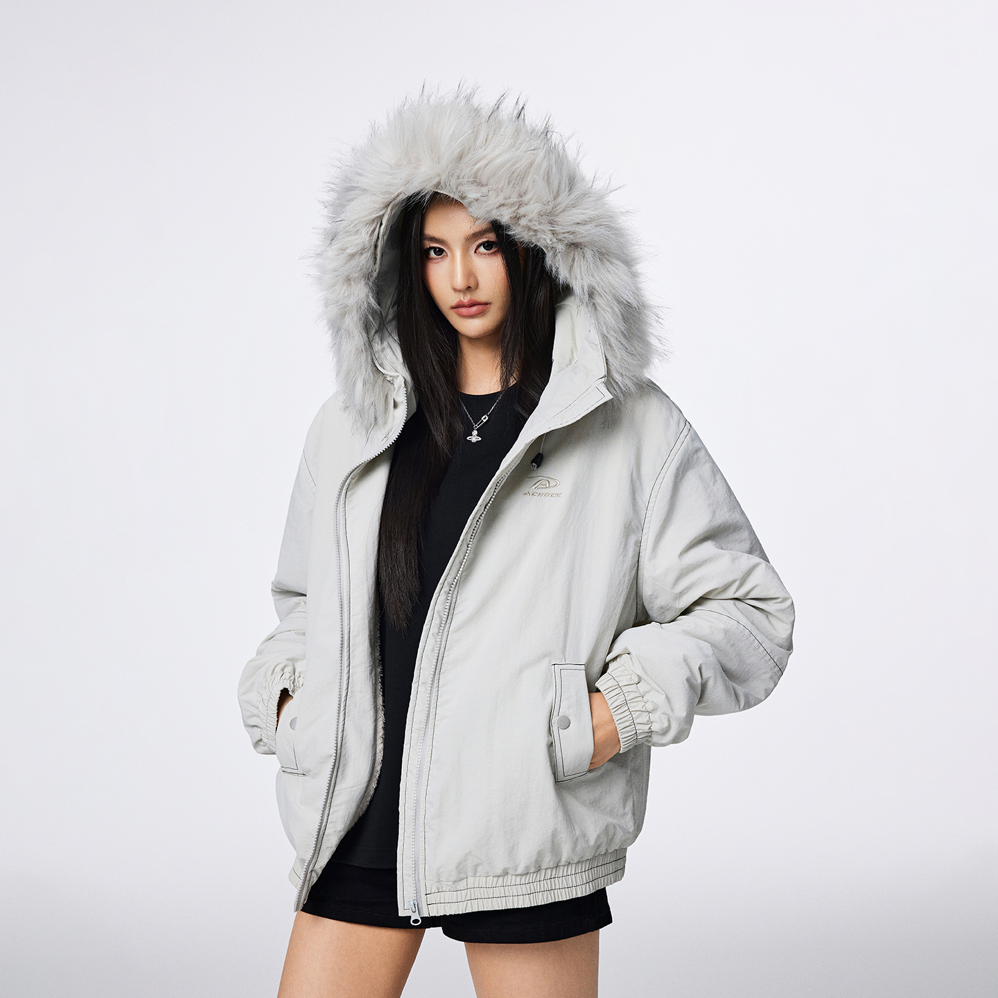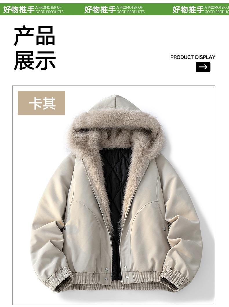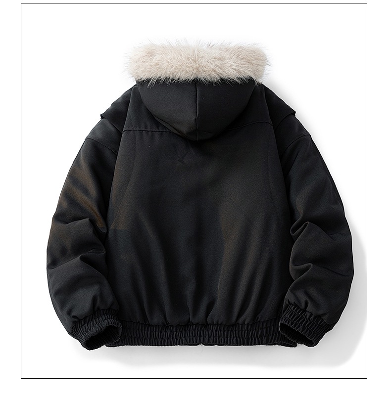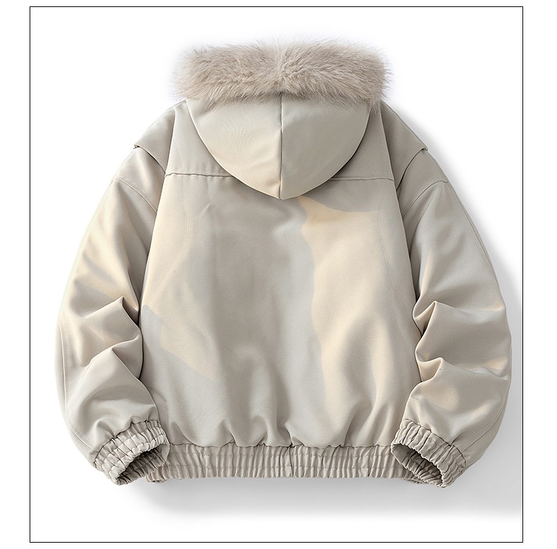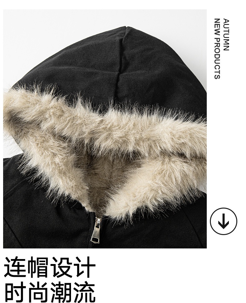 外贸批发美式复古加绒毛领外套女秋冬新款宽松连帽派克棉服夹克