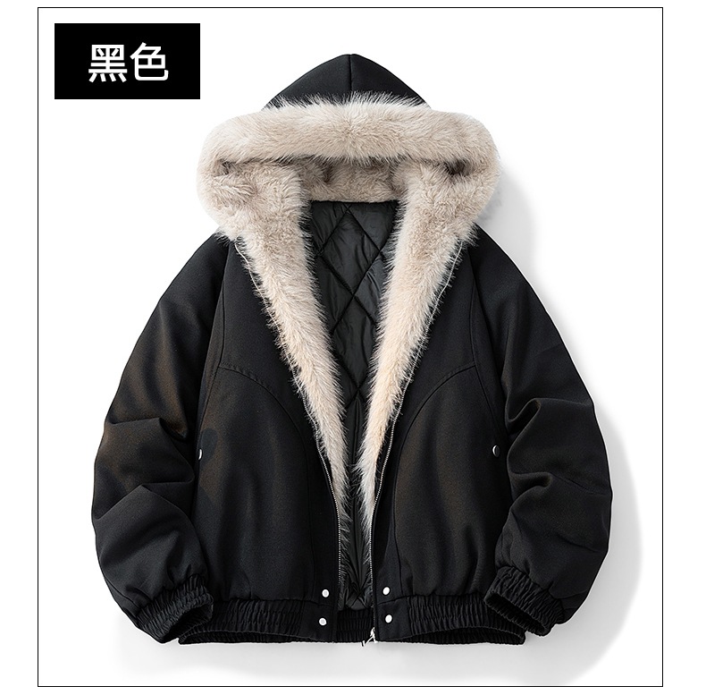 秋冬の新型アメリカの座山彫刻の毛襟とベルベットの厚い綿服ジャケット男女冬の工装カップルコート