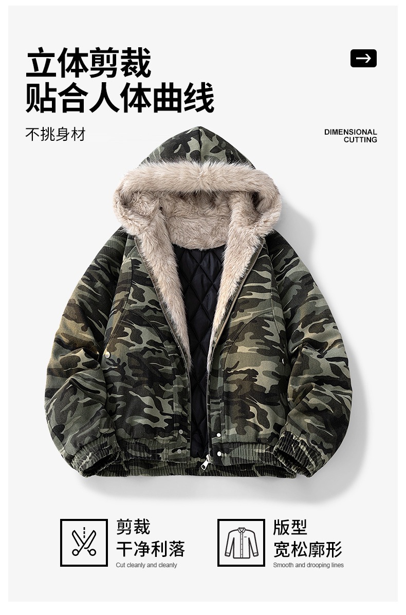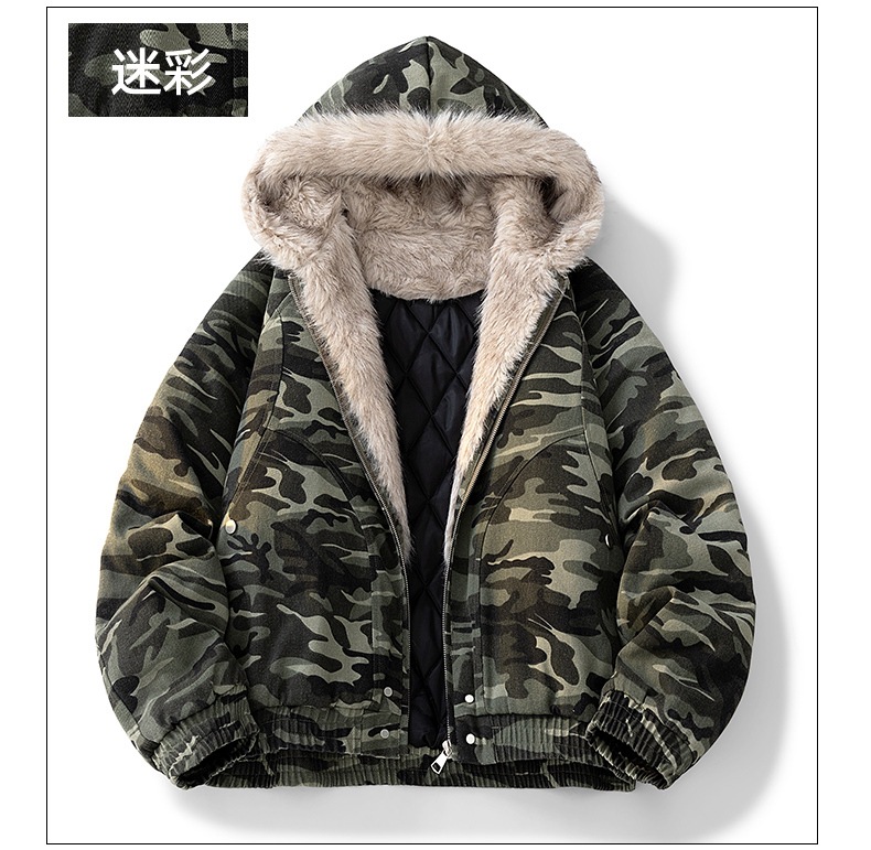 美式座山雕迷彩服2025年秋季新款棉衣男宽松休闲加厚保暖连帽棉服