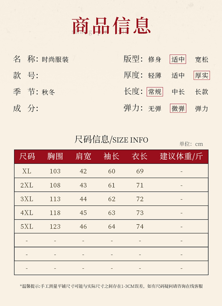 尺码 XL 建议100斤以内,2XL 建议100—115斤,3XL 建议115—130斤,4XL 建议130—145斤,5XL 建议145—160斤