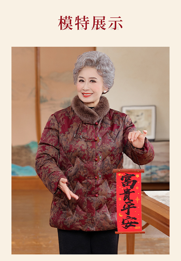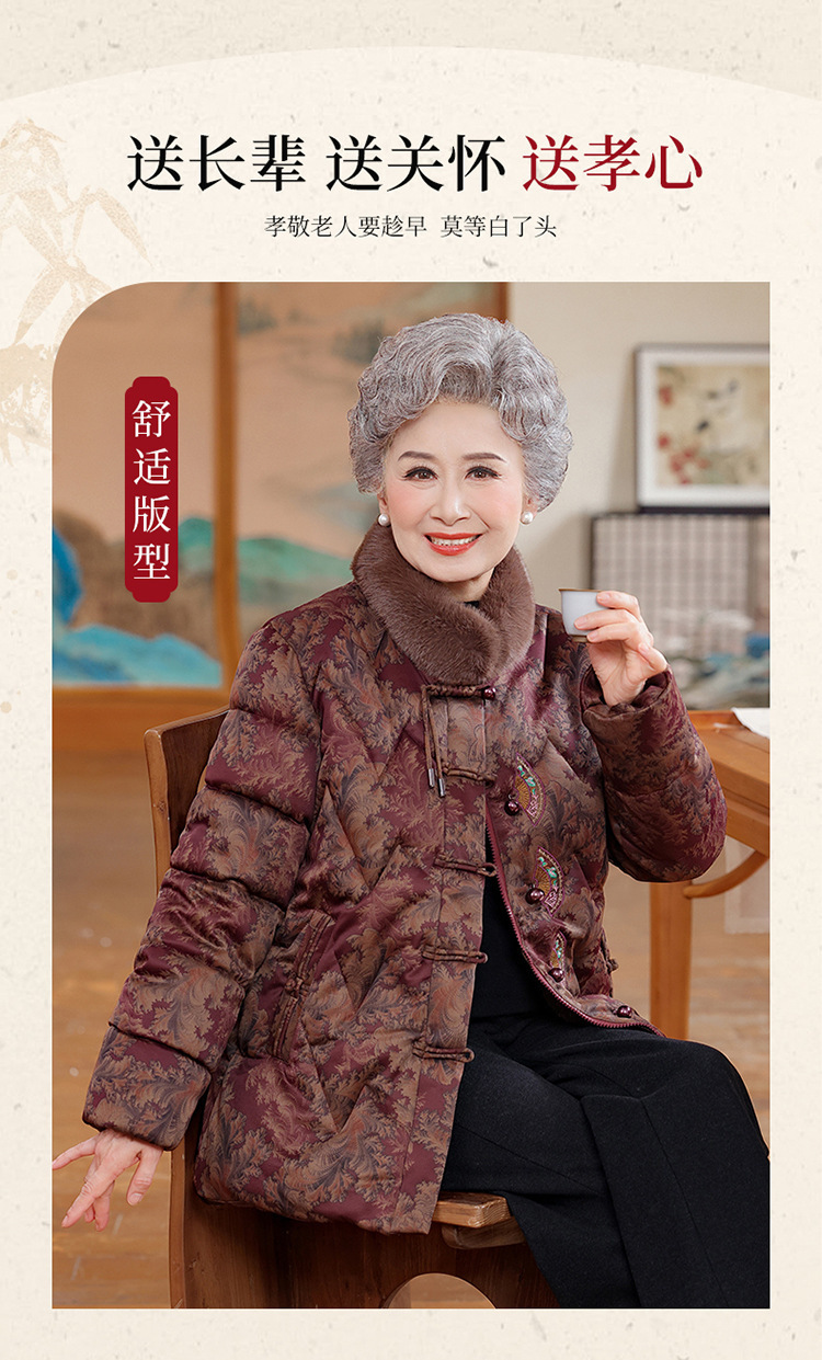 妈妈棉服中老年人冬季外套新款羽绒棉袄女奶奶冬装老太太加绒加厚