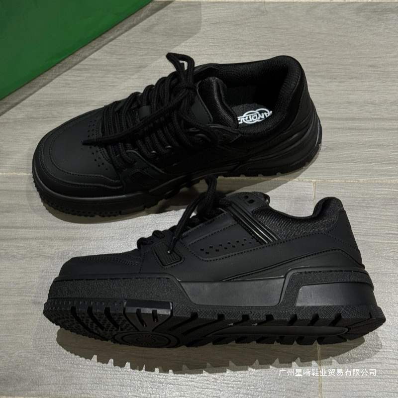 世界的な高颜値百合全黒色靴2024新型秋のシンプルなカジュアルな厚い底が高くなった運動板靴