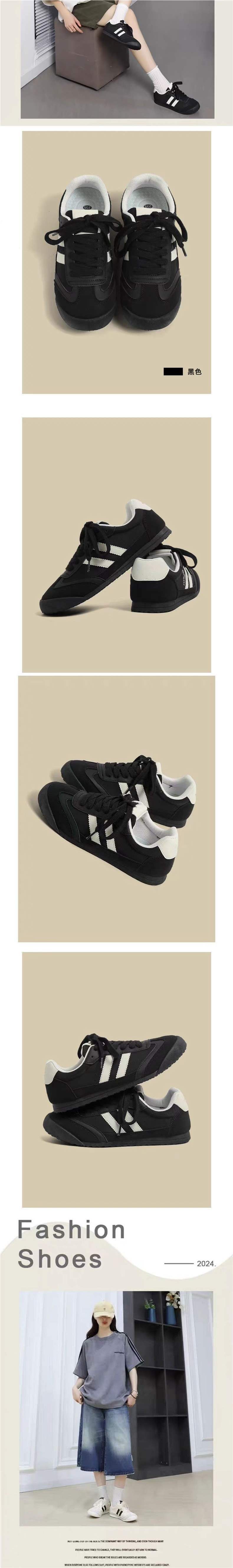 黑色德训运动鞋女秋季新款系带平底学生休闲鞋街拍百搭阿甘鞋