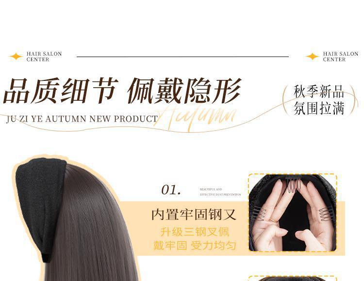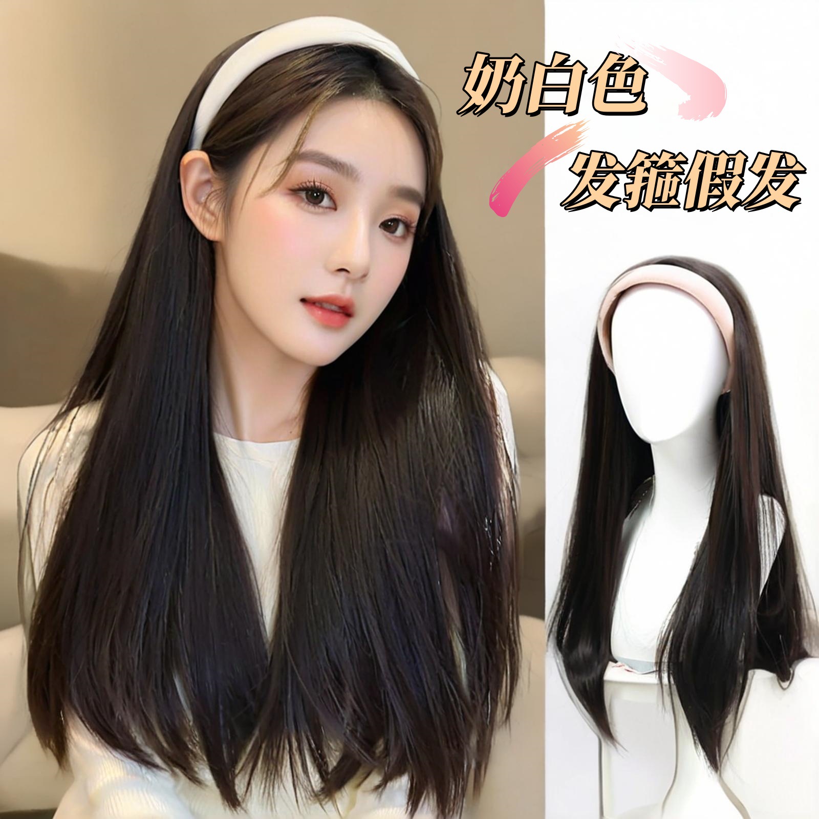 新款发箍假发一体女长直发自然仿真发半全头套高颅顶宽边黑色发卡
