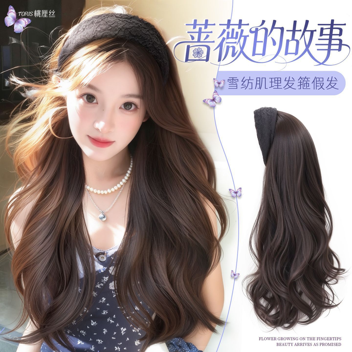 发箍假发一体女新款仿真日常全头套式高颅顶自然帽子长卷发套