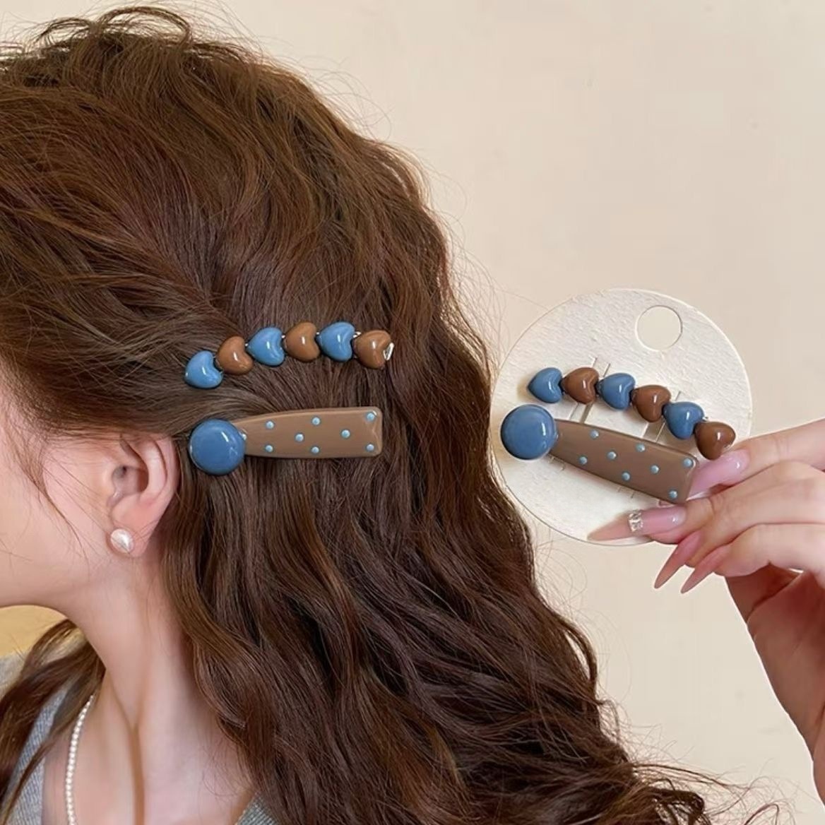 韩系新款甜美简约爱心波点发夹气质侧边夹前额刘海碎发夹子发卡女