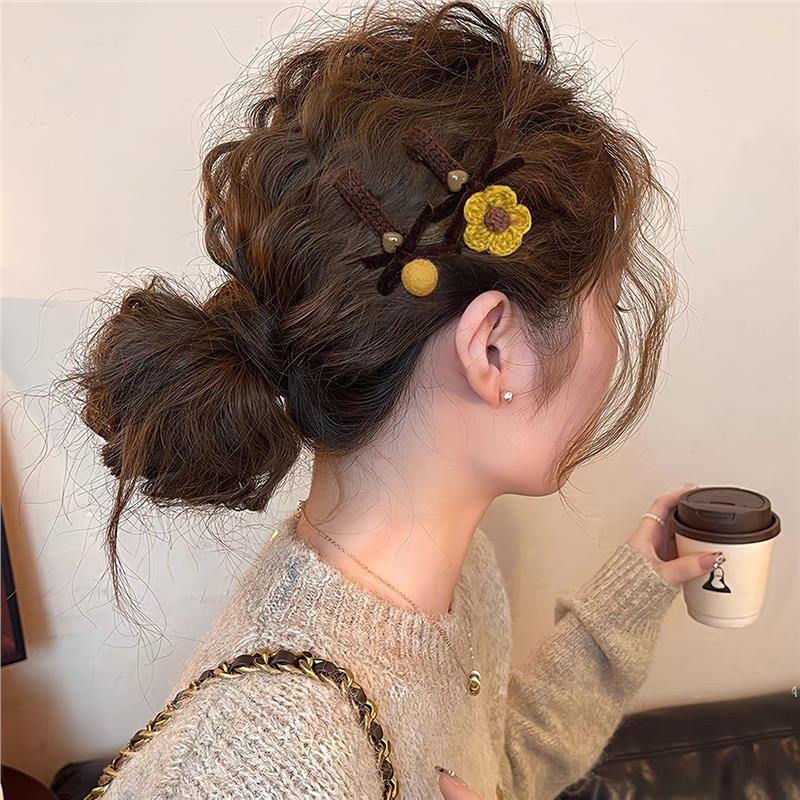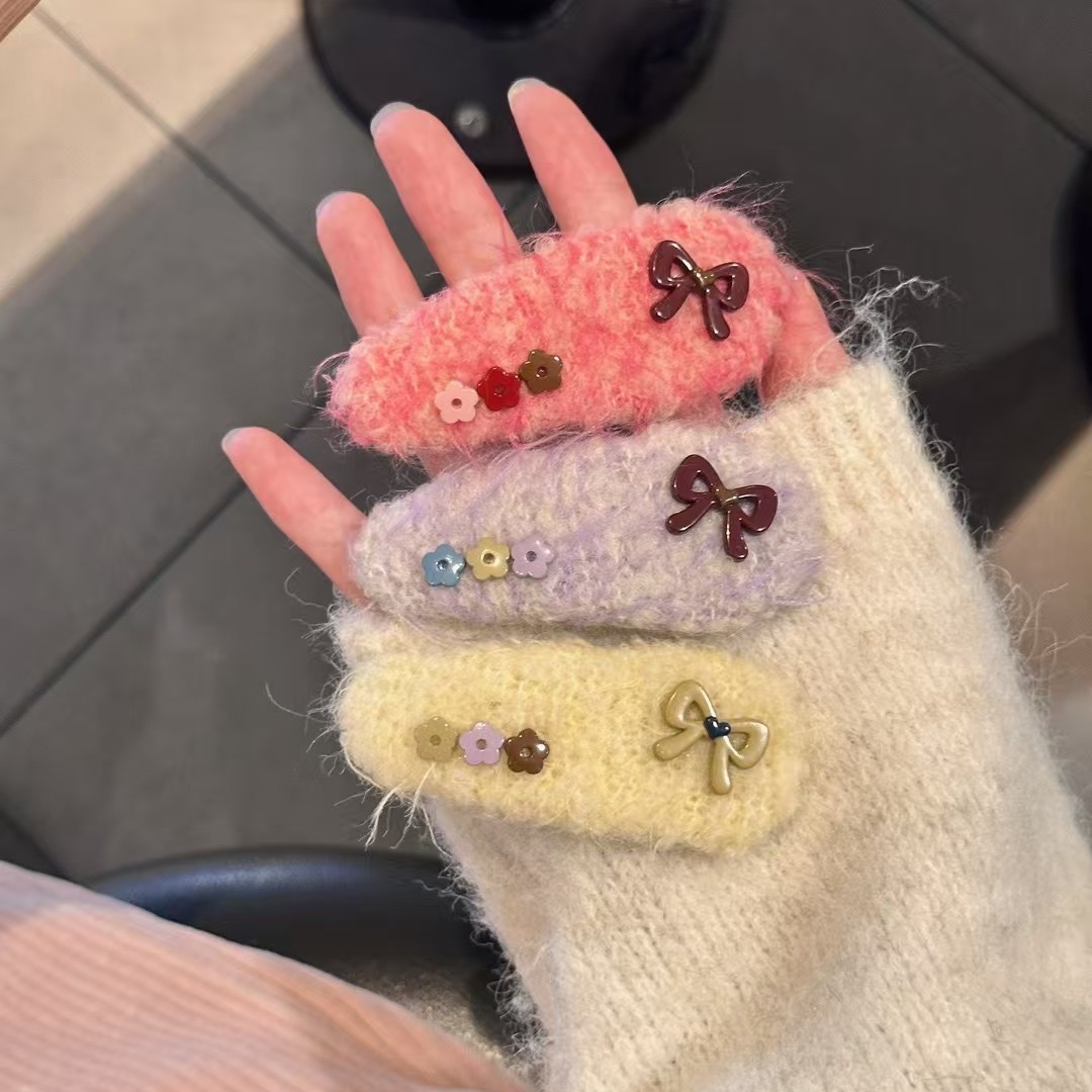 韩系甜美毛绒针织发夹蝴蝶结小花边夹秋冬少女心可爱刘海夹批发