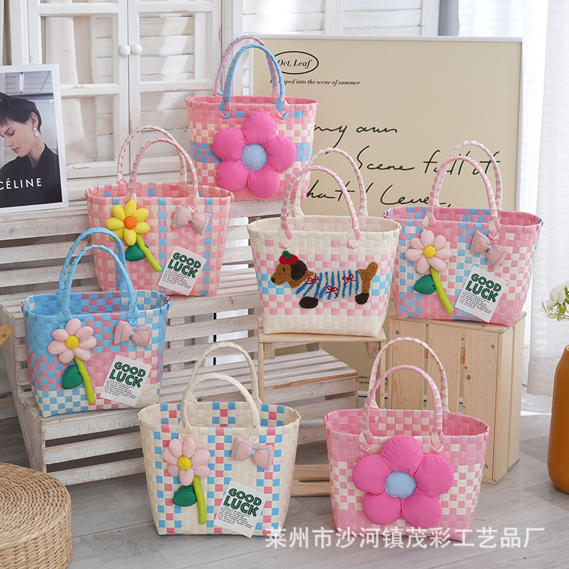 新款多巴胺配色手工编织包儿童生日宴礼品包伴手礼包包百搭手提包