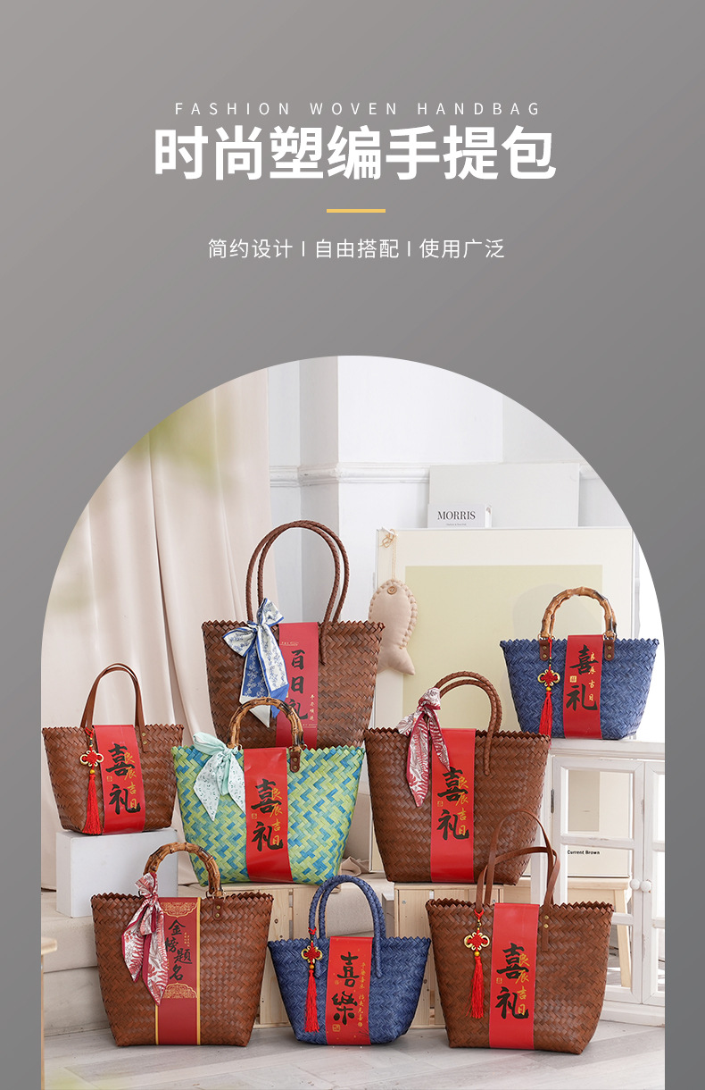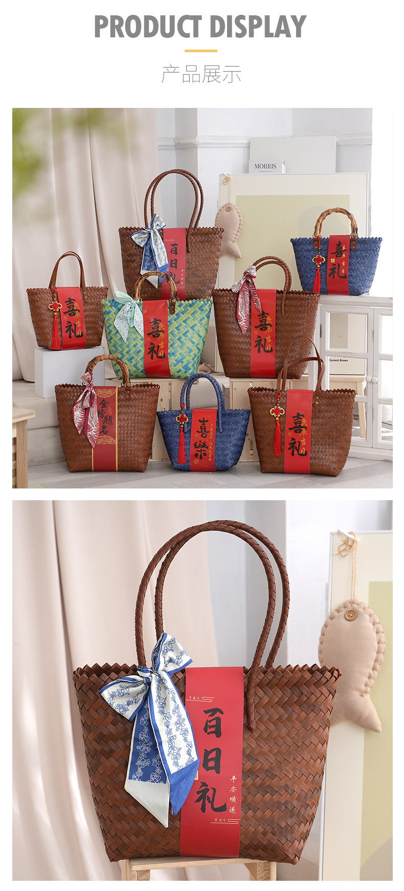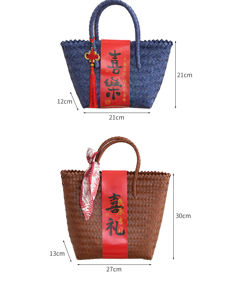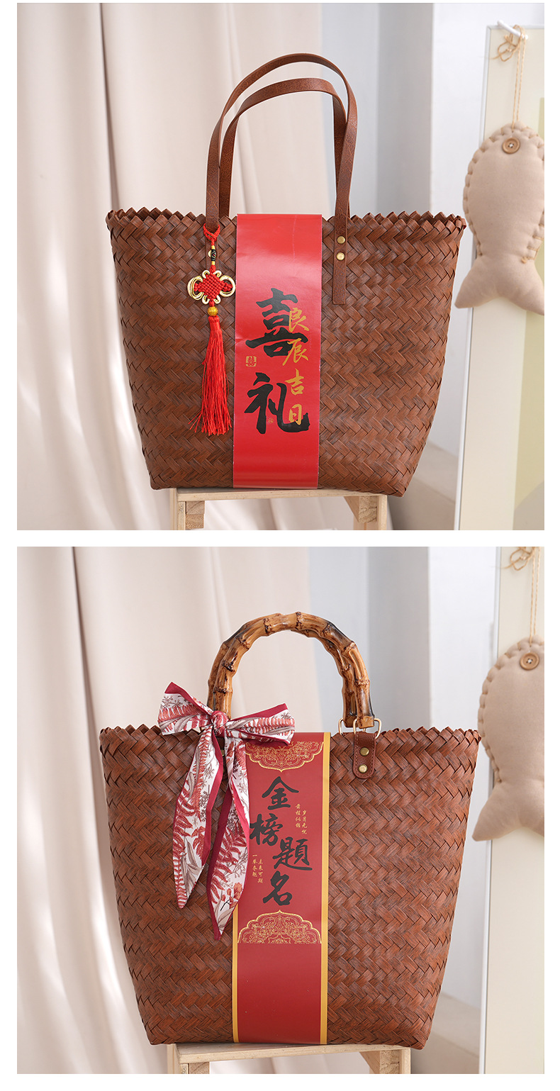 大容量手工编织包百日伴手礼包包乔迁喜事礼品袋上班通勤手拎包