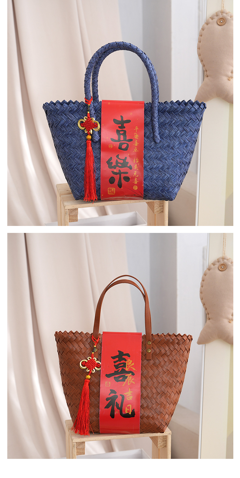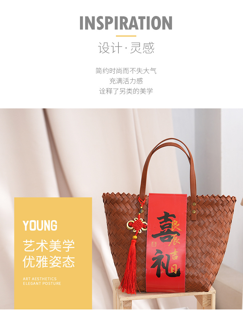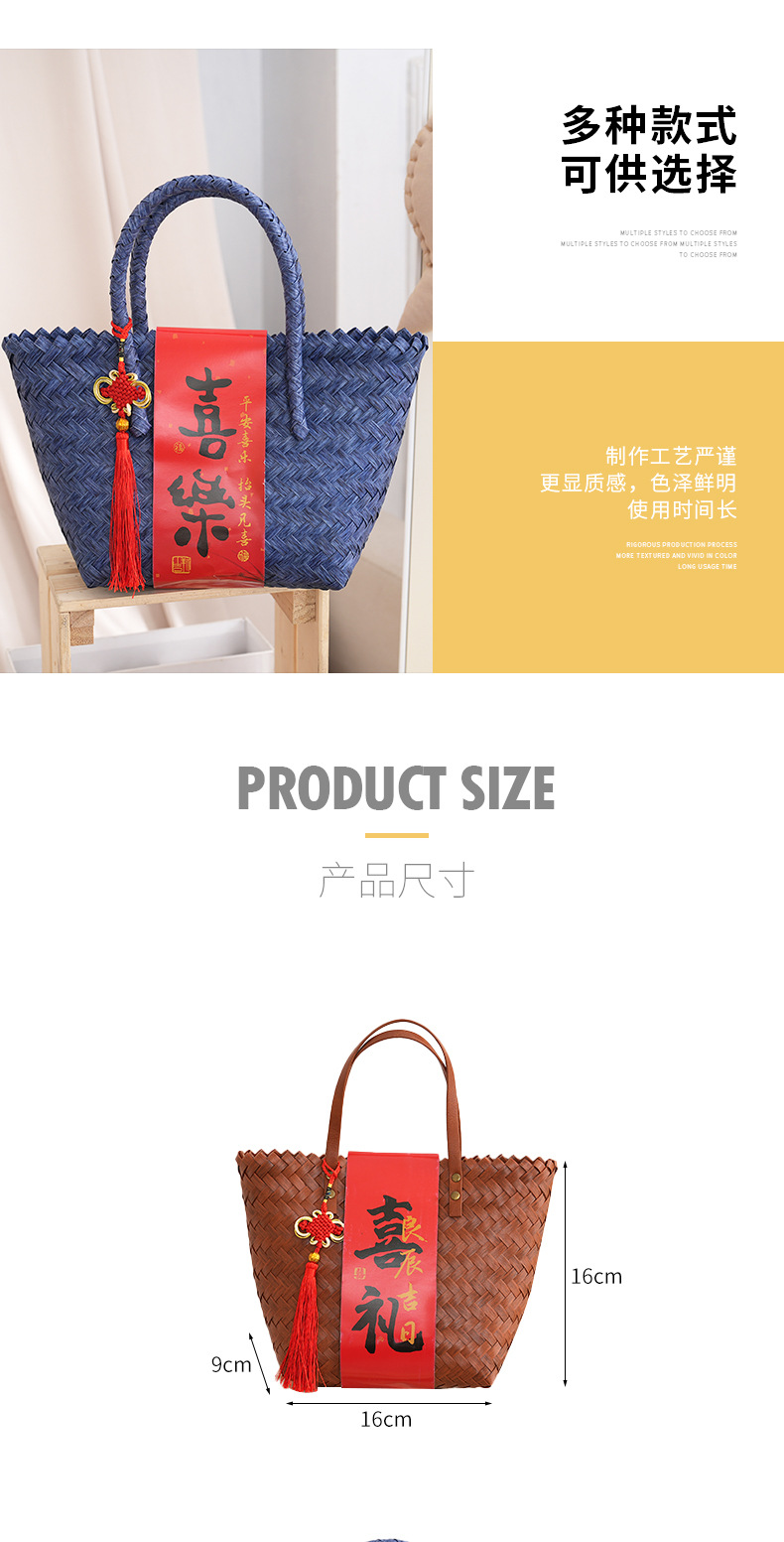 大容量手工编织包百日伴手礼包包乔迁喜事礼品袋上班通勤手拎包