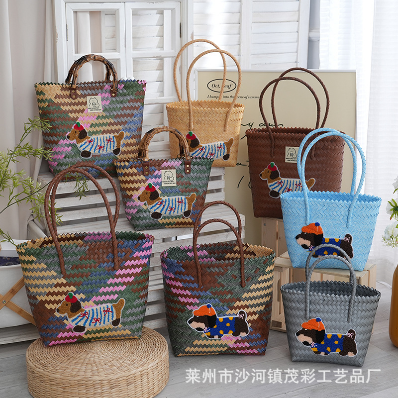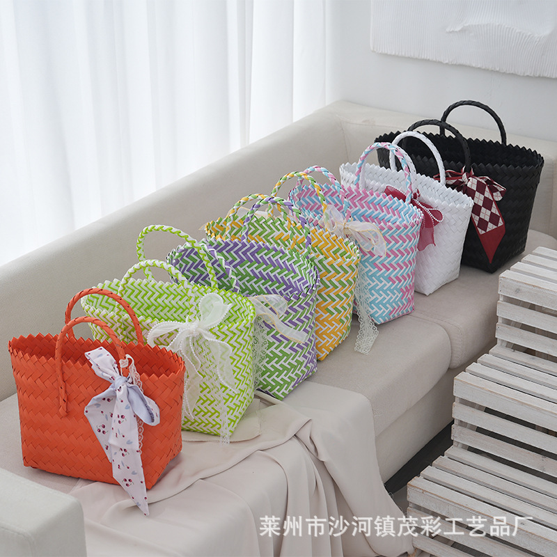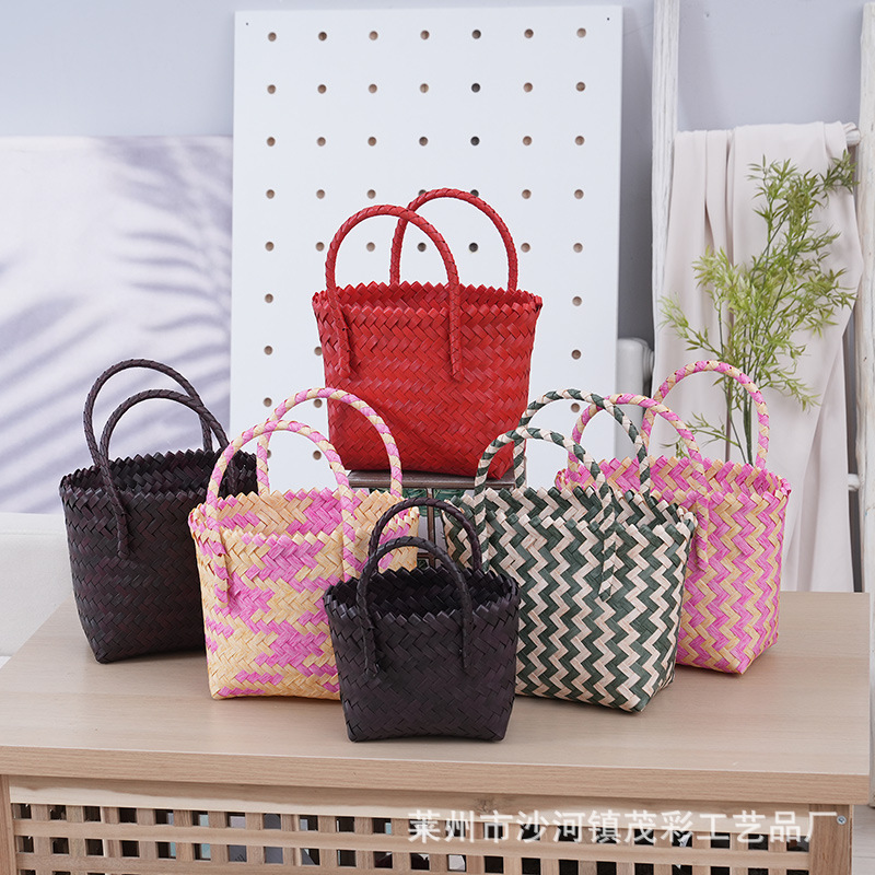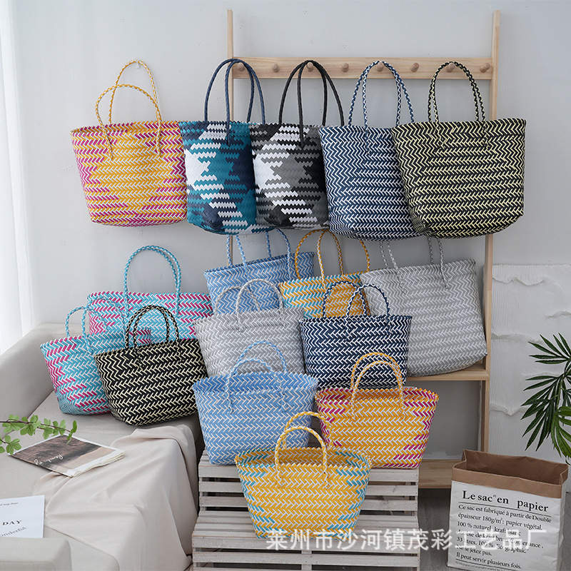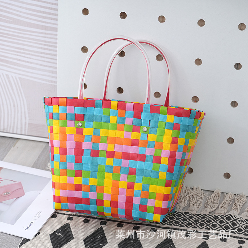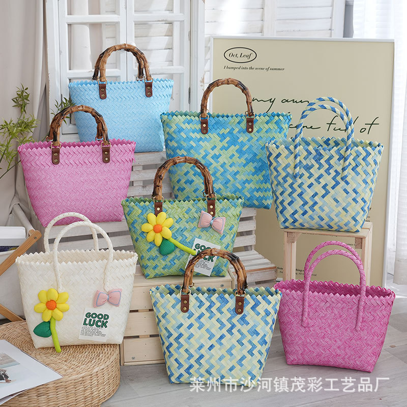 彩色手工编织包大容量休闲时尚手提包菜篮子野餐出游包包批发