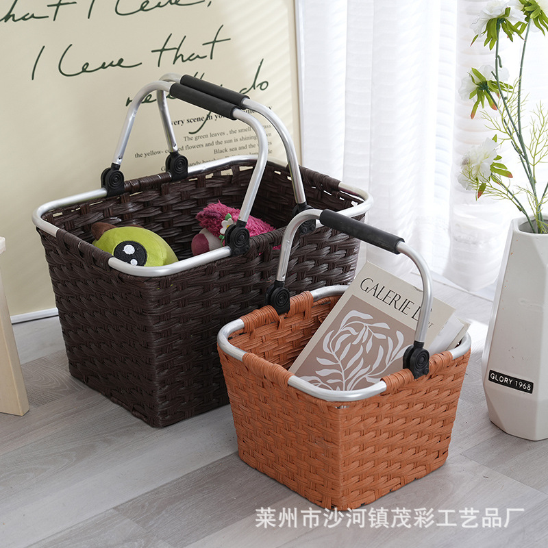 车载收纳筐野餐篮零食收纳篮带提手逛街购物篮多功能储物篮