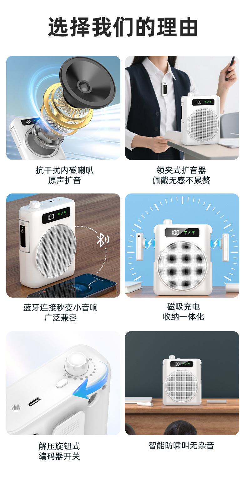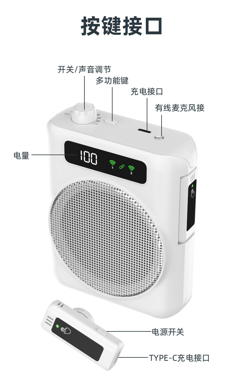 新款无线领夹麦扩音器大喇叭摆摊扩音叫卖器护嗓神器小蜜蜂扩音器