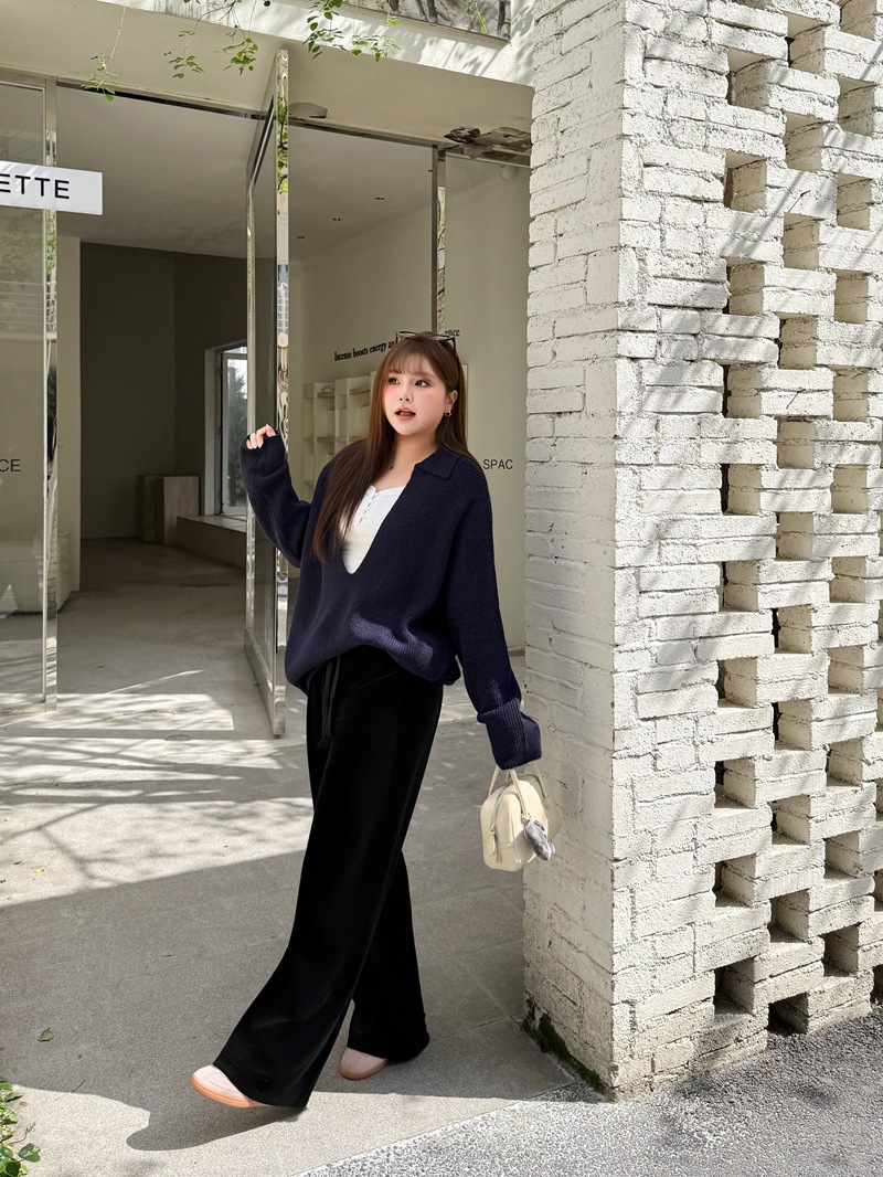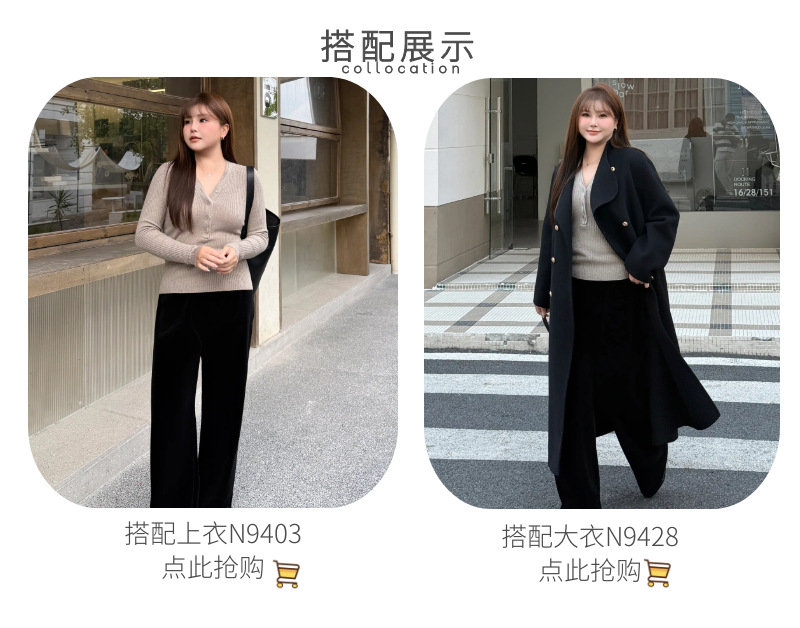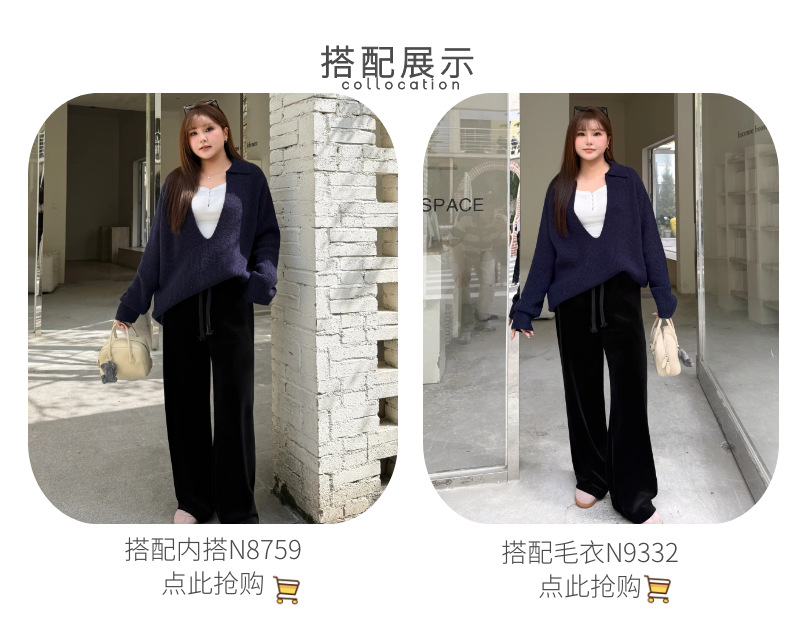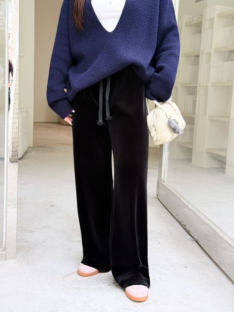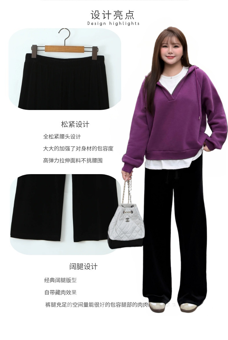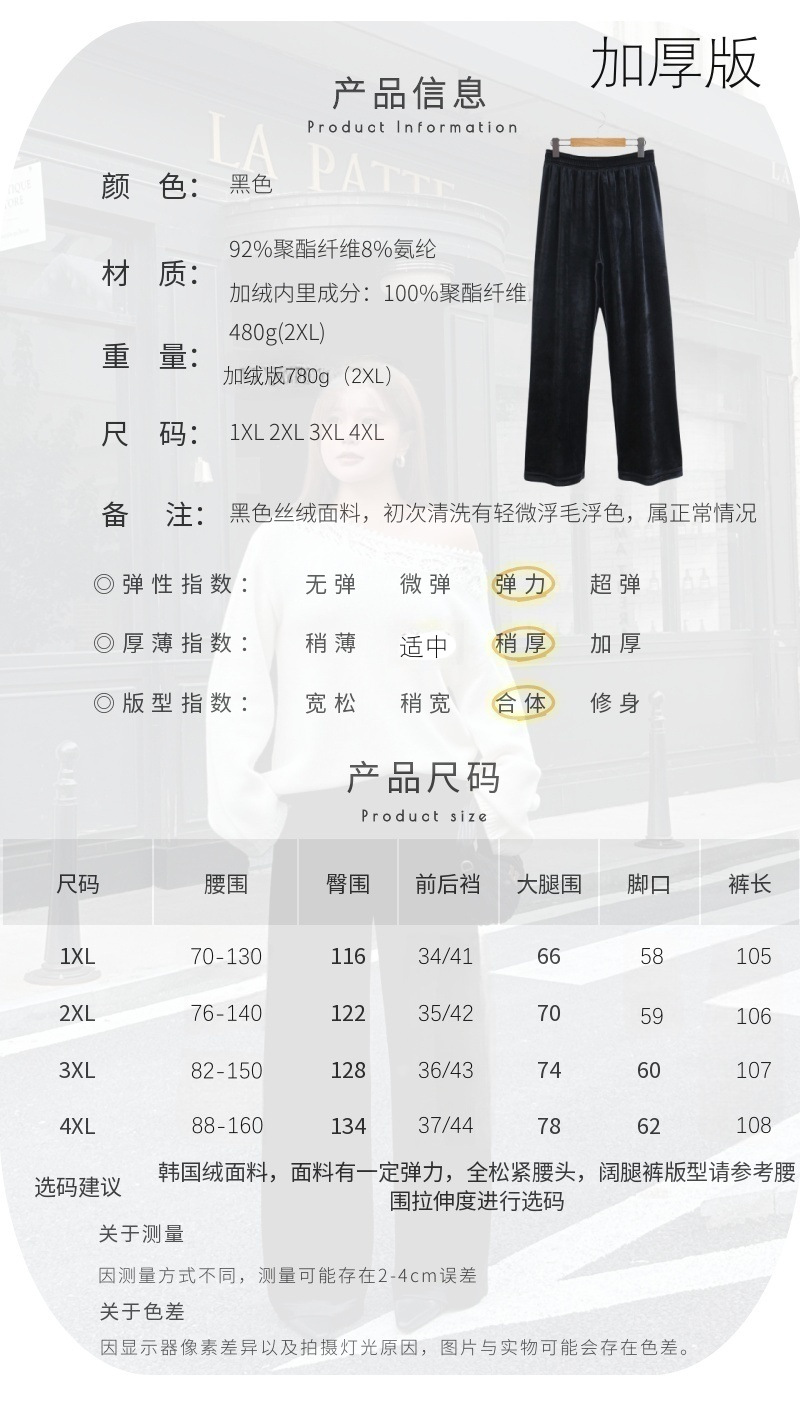 加厚复合奢感丝绒垂坠直筒阔腿裤润其9416大码320g韩国绒环保固色