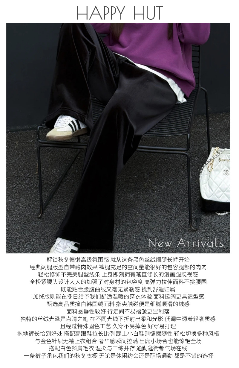 加厚复合黑丝绒高腰阔腿裤润其9416-1大码休闲韩国绒一条温暖过冬