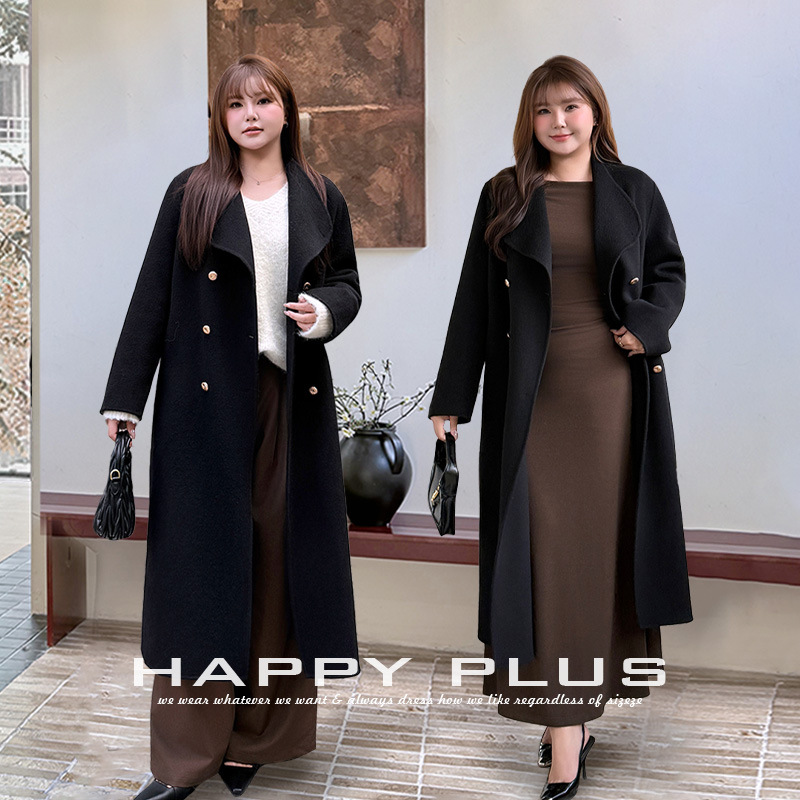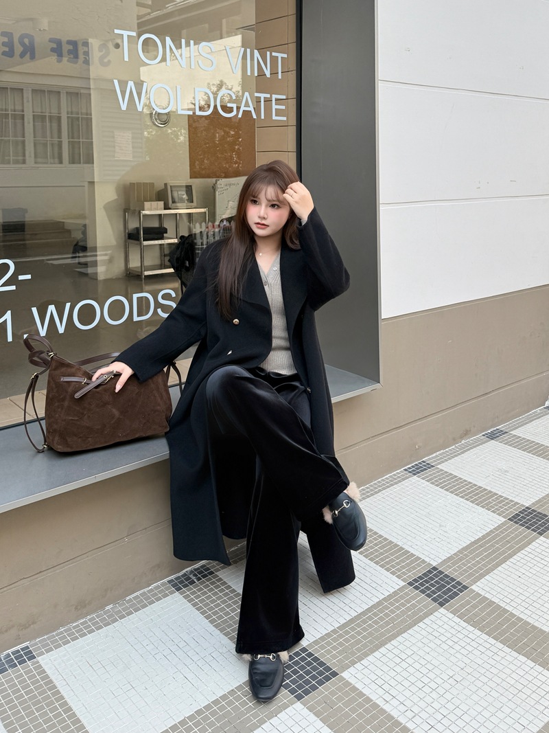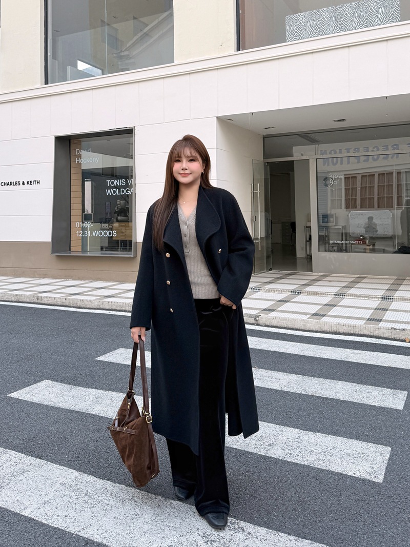通勤用正肩ウール両面ウールコート ミドル丈 大きめサイズ 通勤用羊毛ロングコート 潤其9084