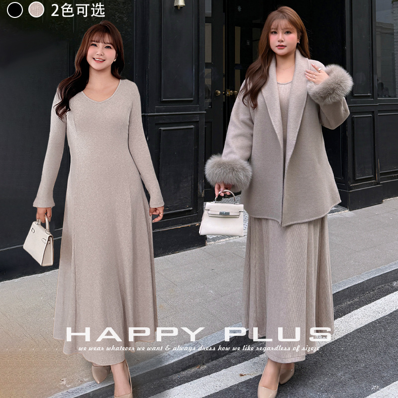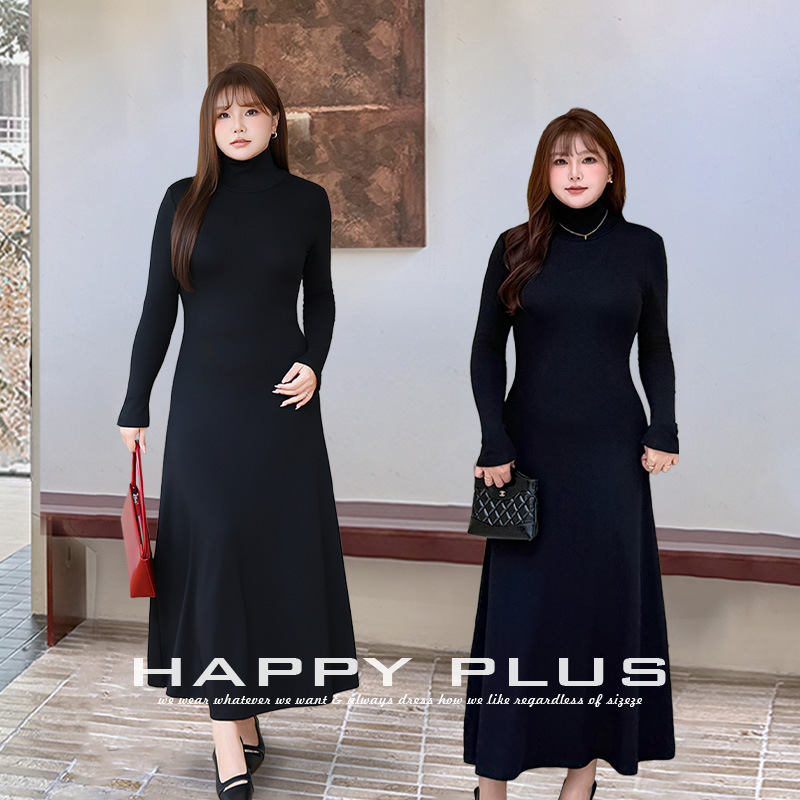 莱卡针织收腰A字小高领连衣裙润其N9429大码法式打底长裙曼妙曲线
