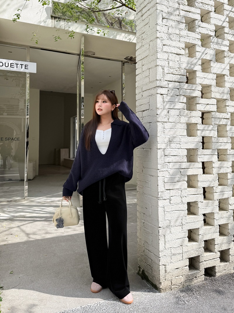 Vネッククロス優しいins風正肩ニットは8775サイズの婦人服の高級感のある純色ニットセーターを潤します。