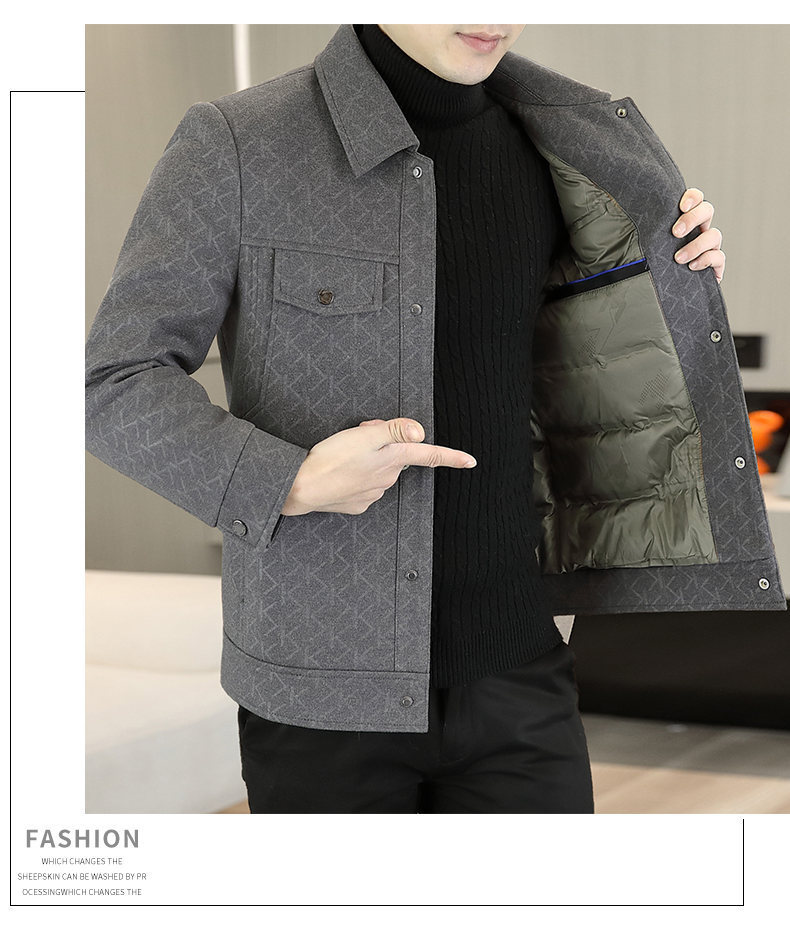 男士翻领帅气休闲毛呢大衣冬季保暖羽绒服外套防寒服白鸭绒高级感
