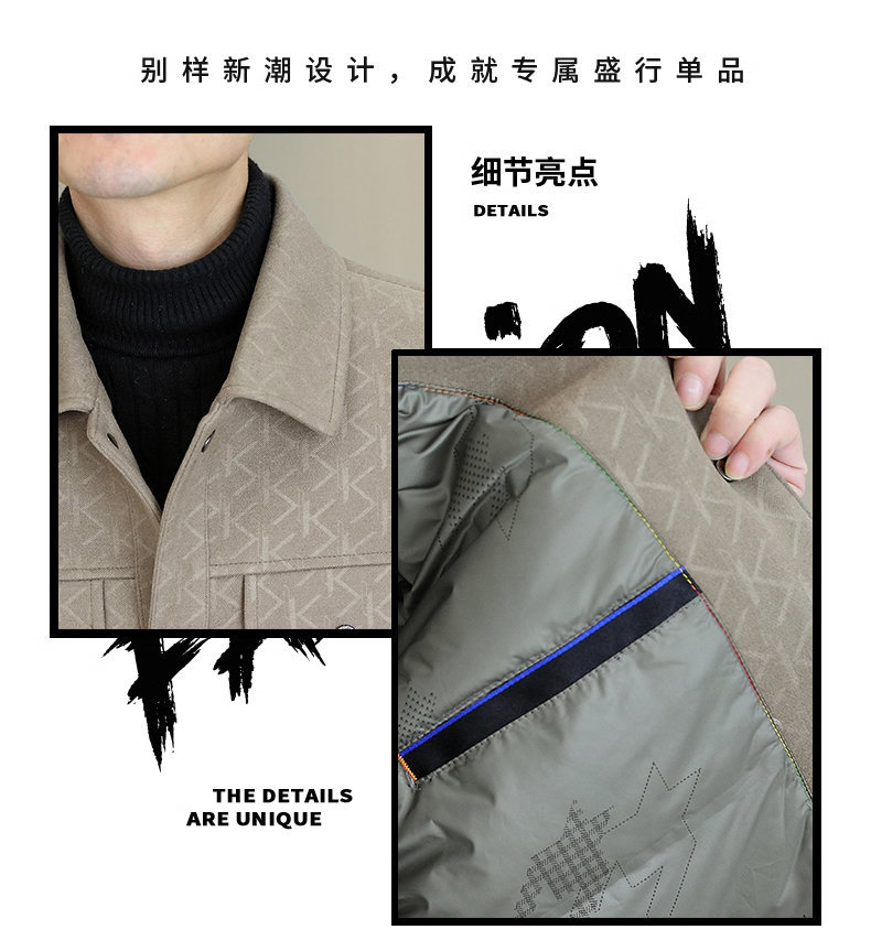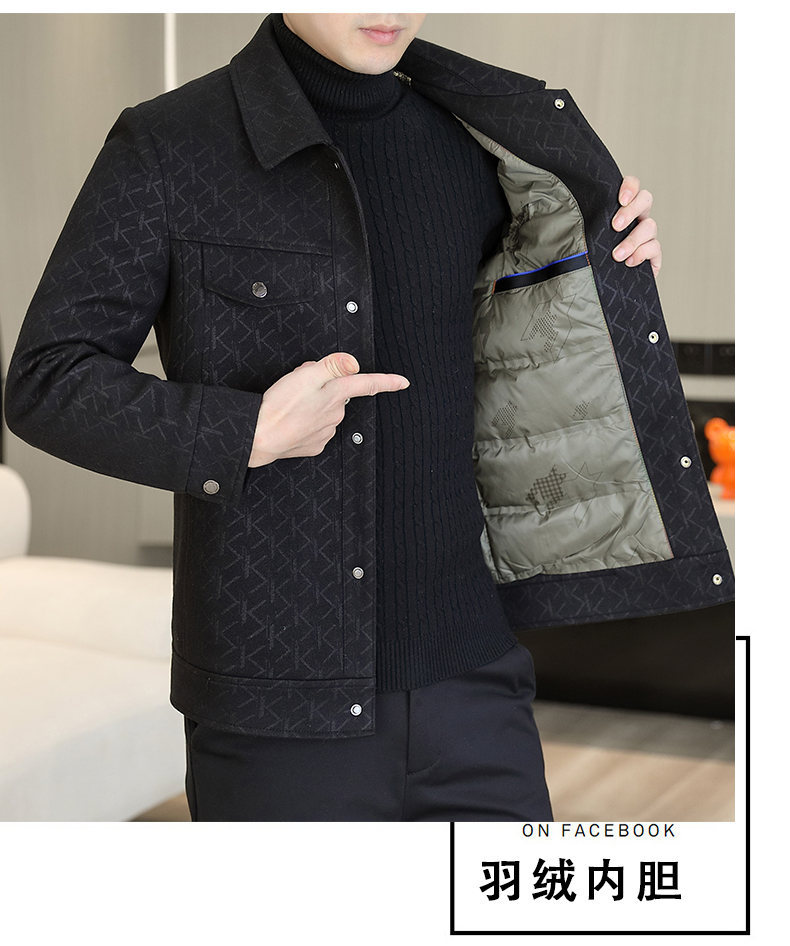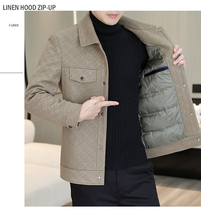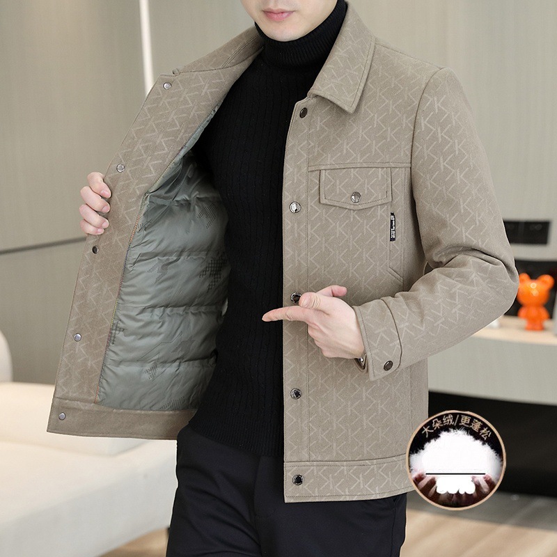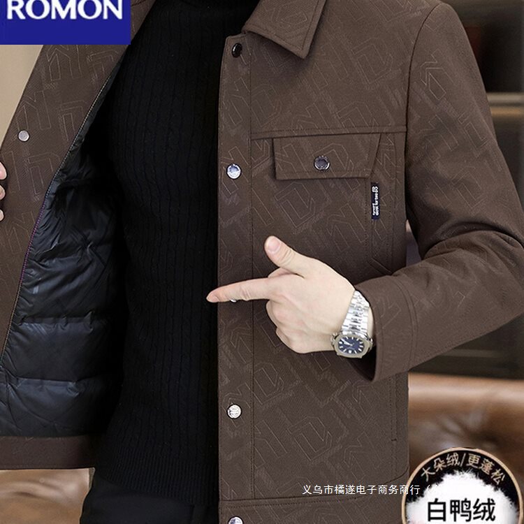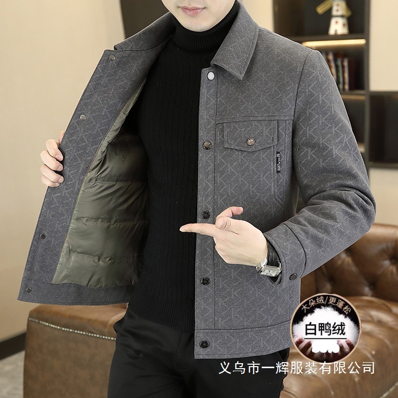 2025冬季提花夹克男士翻领羽绒服白鸭绒保暖外套中青年时尚代批发