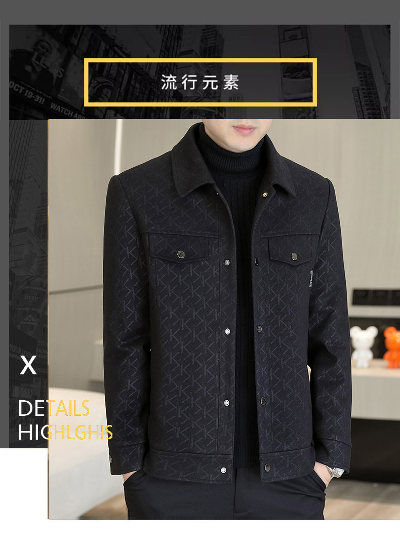 呢子外套男士高级感翻领加厚保暖短款大衣冬季中青年帅气休闲夹克