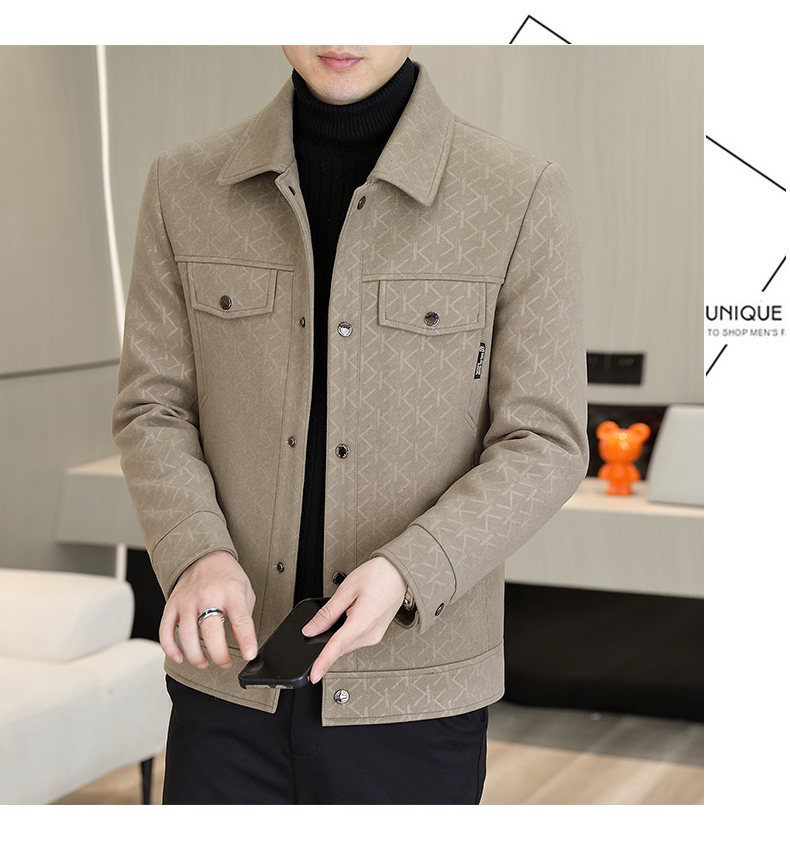 2025春秋新作襟付きジャケット純色中青年カジュアルジャケット男性コート