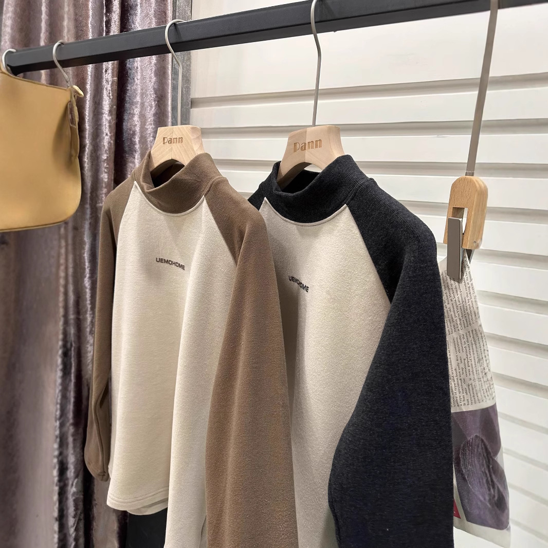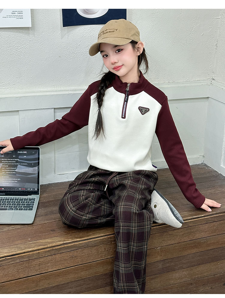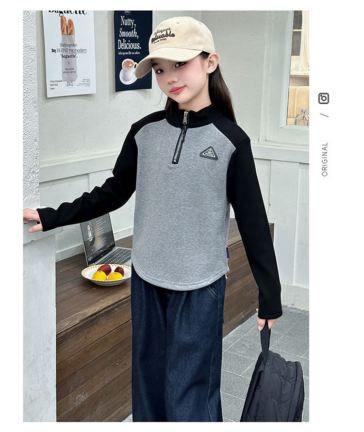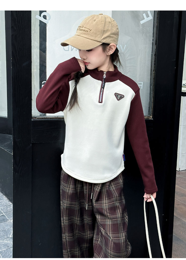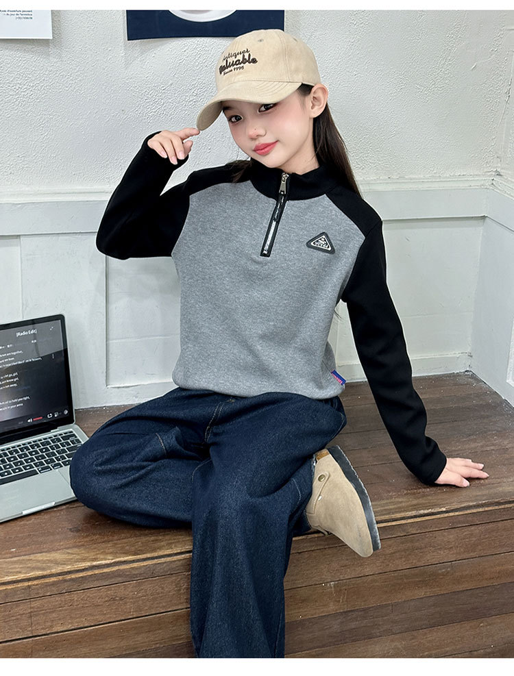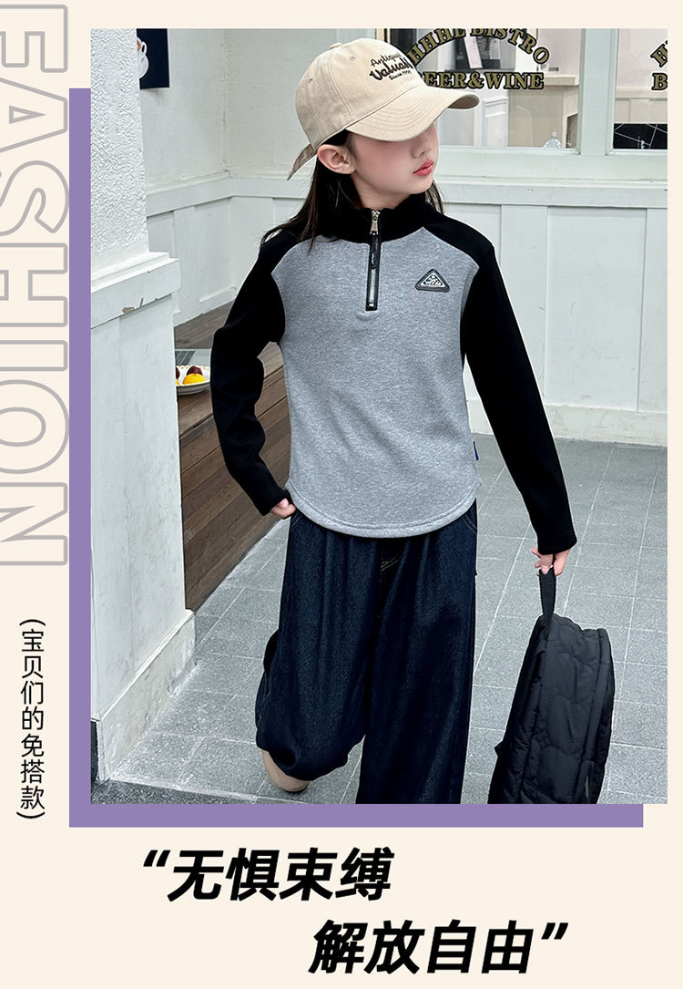 女童冬装德绒拼色长袖打底衫2025新款中大童韩版洋气半拉链T恤潮
