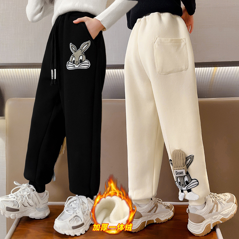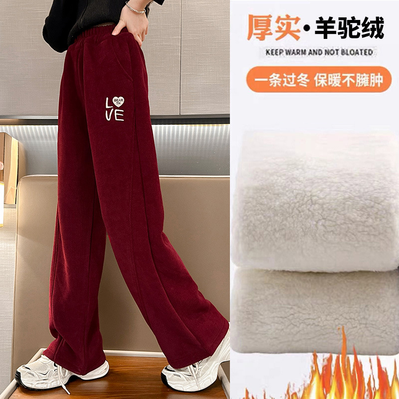 女の子のベルベットはズボンを厚くして秋の冬の新型の子供の一体のベルベットのストレートズボンの子供の子羊のベルベットのワイドパンツを厚くした