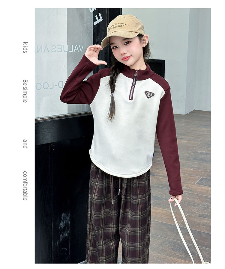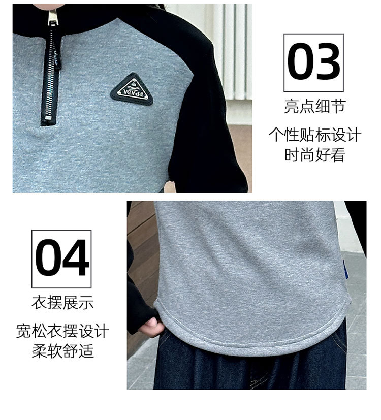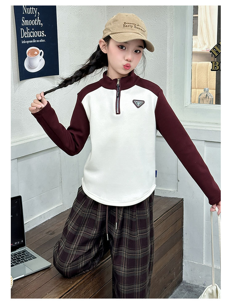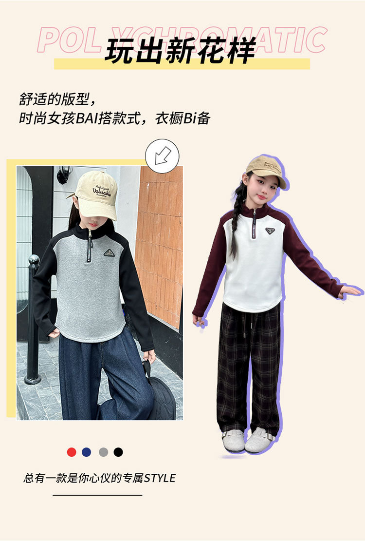 专供抖音高质量 德绒复合420克女童加绒半拉链卫衣