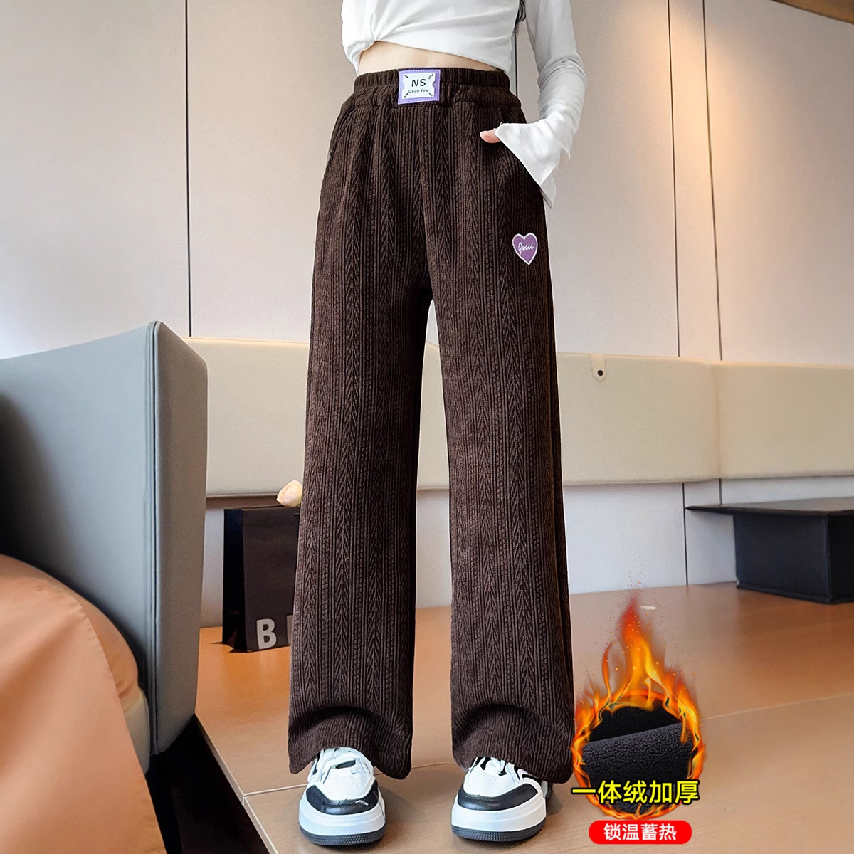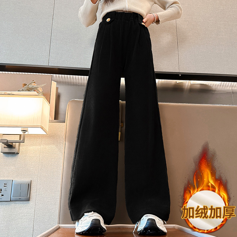 女の子のワイドパンツ春秋冬2024新型子供の中の子供のストレートパンツの狭いバージョンのカジュアルなベルベットのズボンの潮