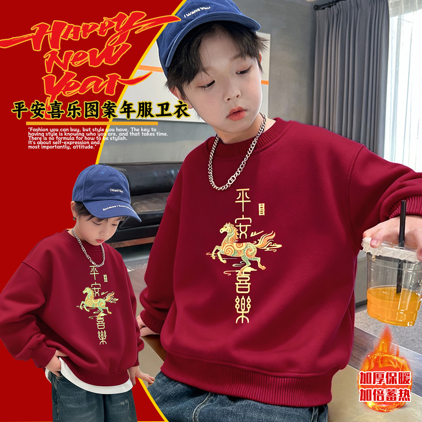 男童本命年红色加绒卫衣2025新款儿童马年拜年服中大童装新年衣服
