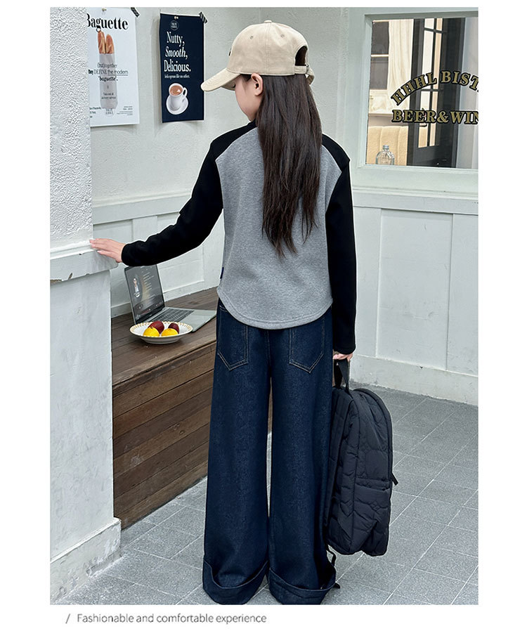 女の子のズボンの秋冬のタイプの2024の新型の冬の服の大きい子供のファッションの洋風のネットの赤い広足のデニムの子供のベルベットのズボン