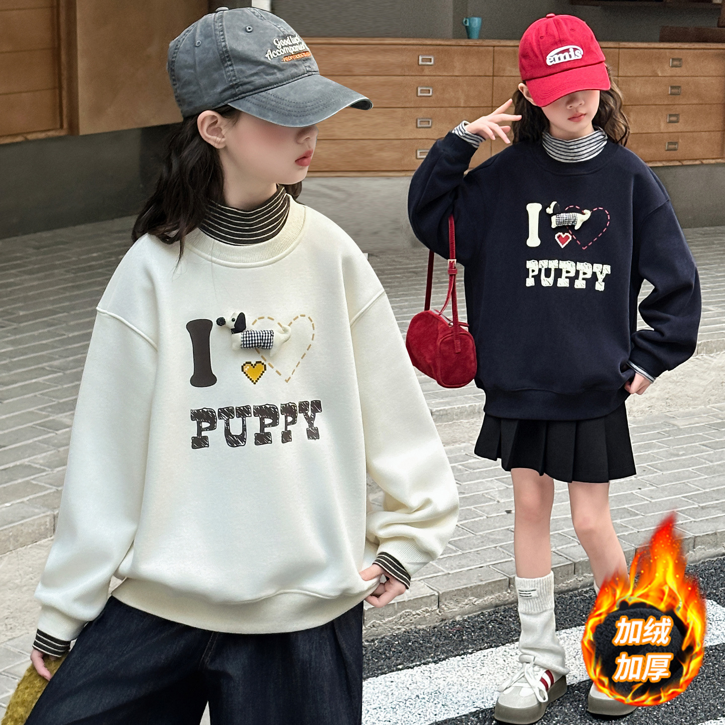 童装女童秋冬保暖上衣2025新款儿童韩系大童时髦加厚一体绒卫衣