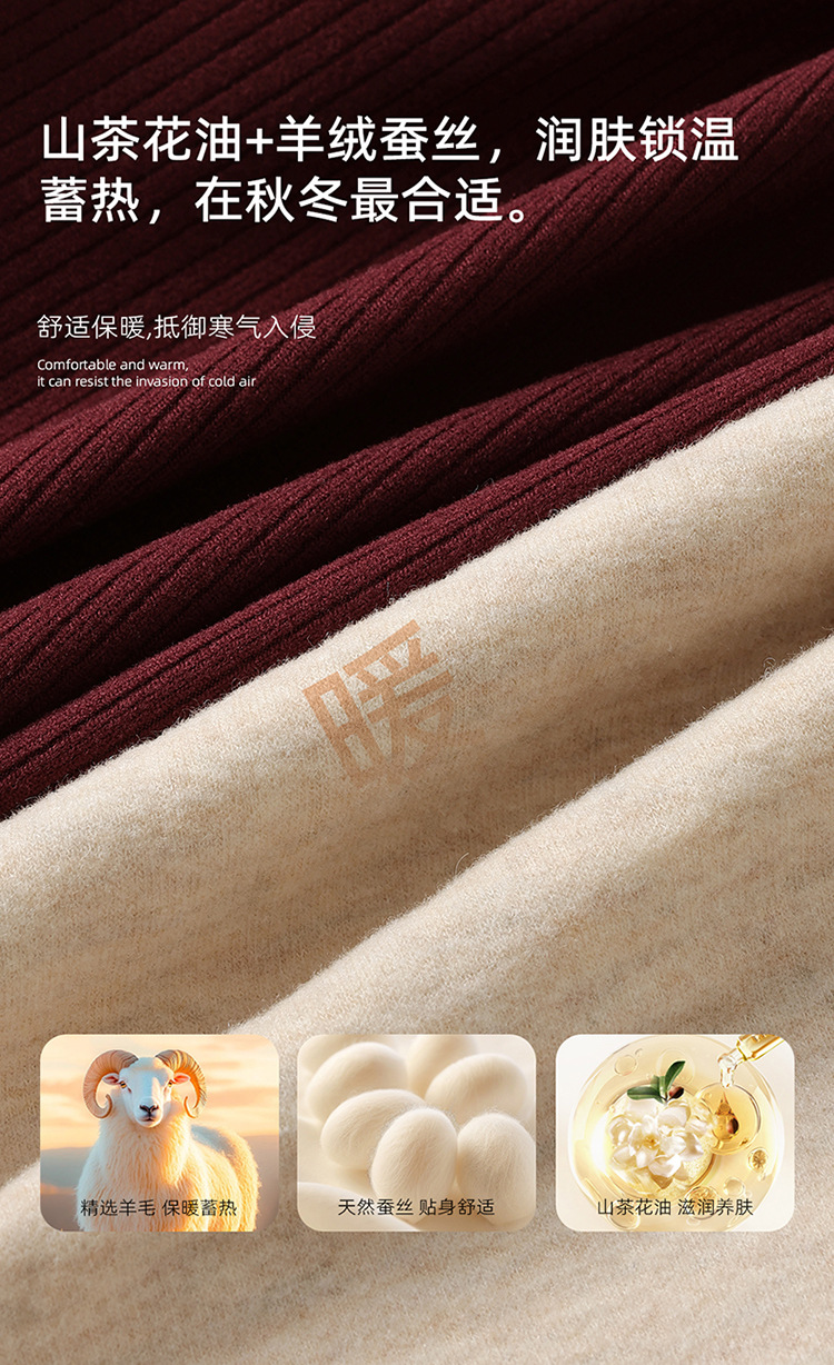 秋冬羊绒桑蚕丝保暖内衣女士显瘦自带胸垫棉毛衫打底秋衣