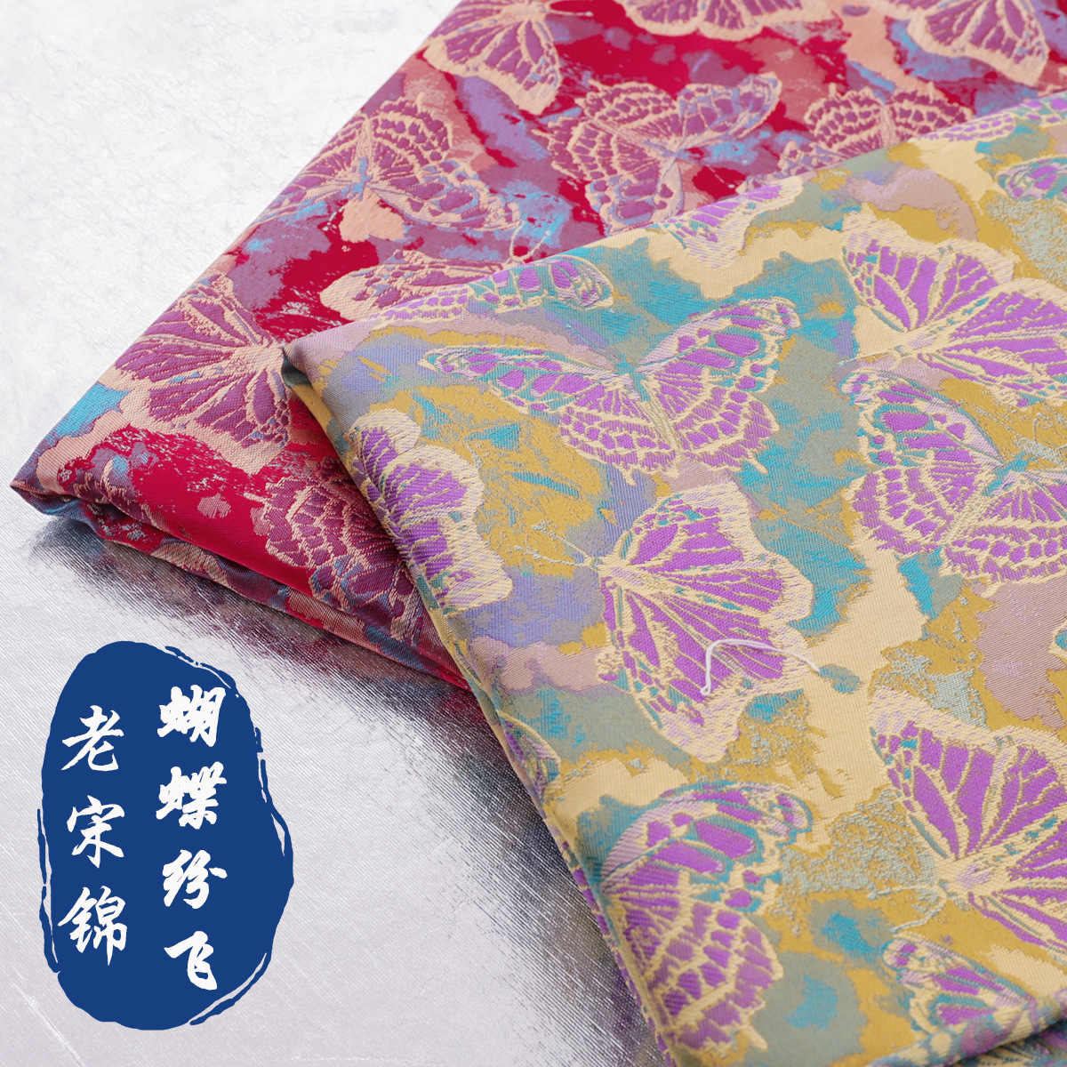 《FS243蝴蝶纷飞》国风老宋锦布料外套汉服马甲服装面料手工布料