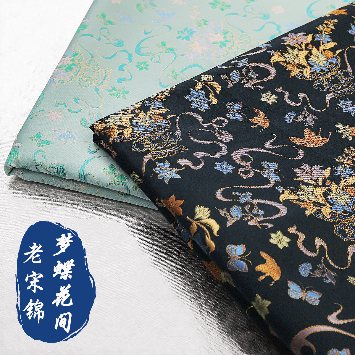 《FS332梦蝶花间》国风锦缎老宋锦布料做马甲汉服上衣服装面料