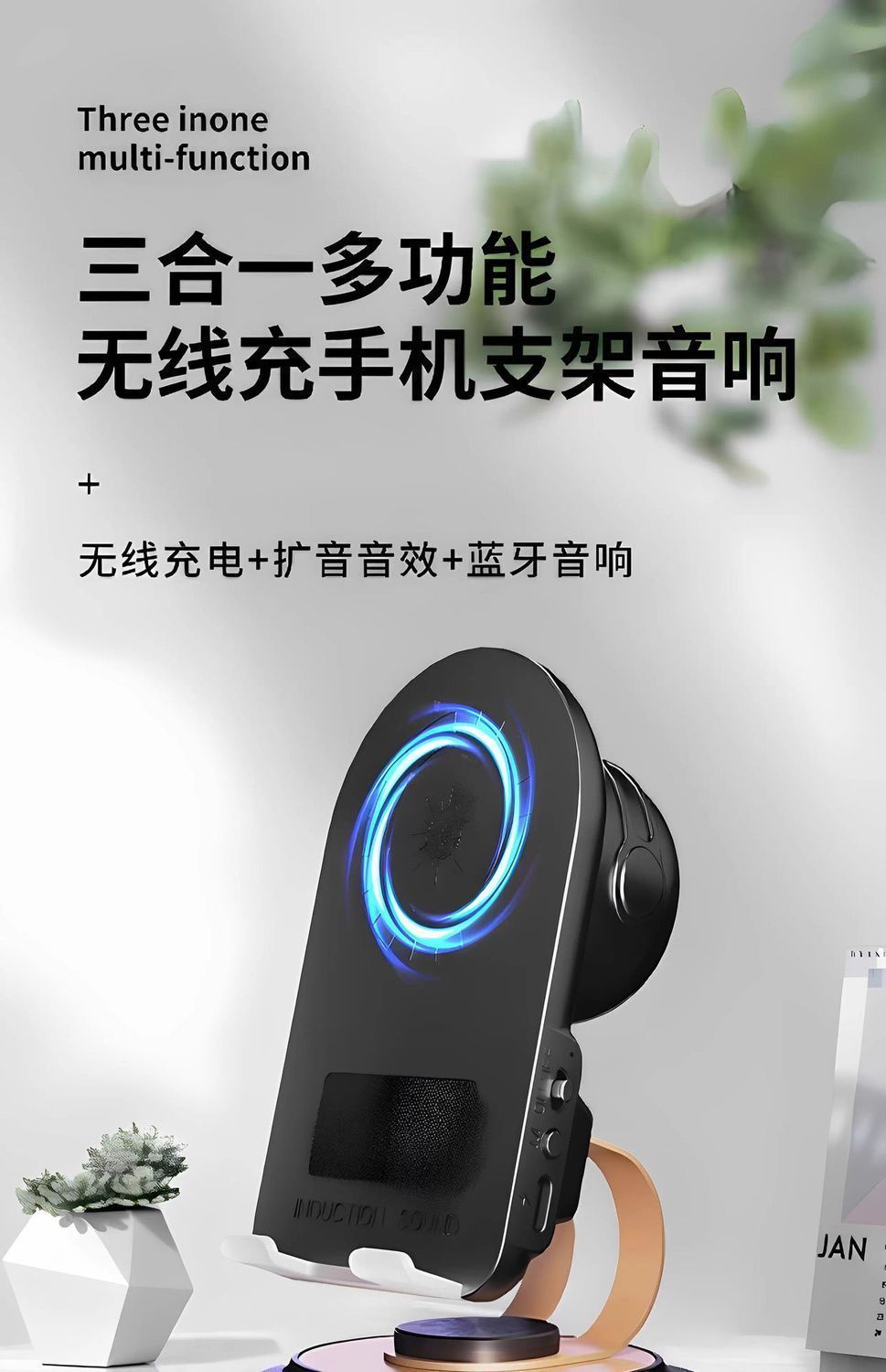 新款多功能3合1蓝牙音箱 无线充 手机支架直播用磁吸快充感应立式