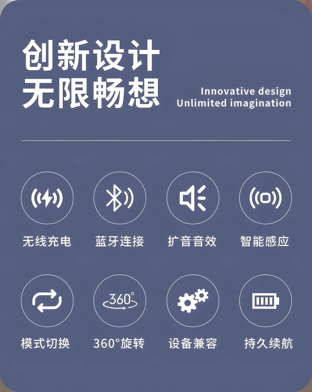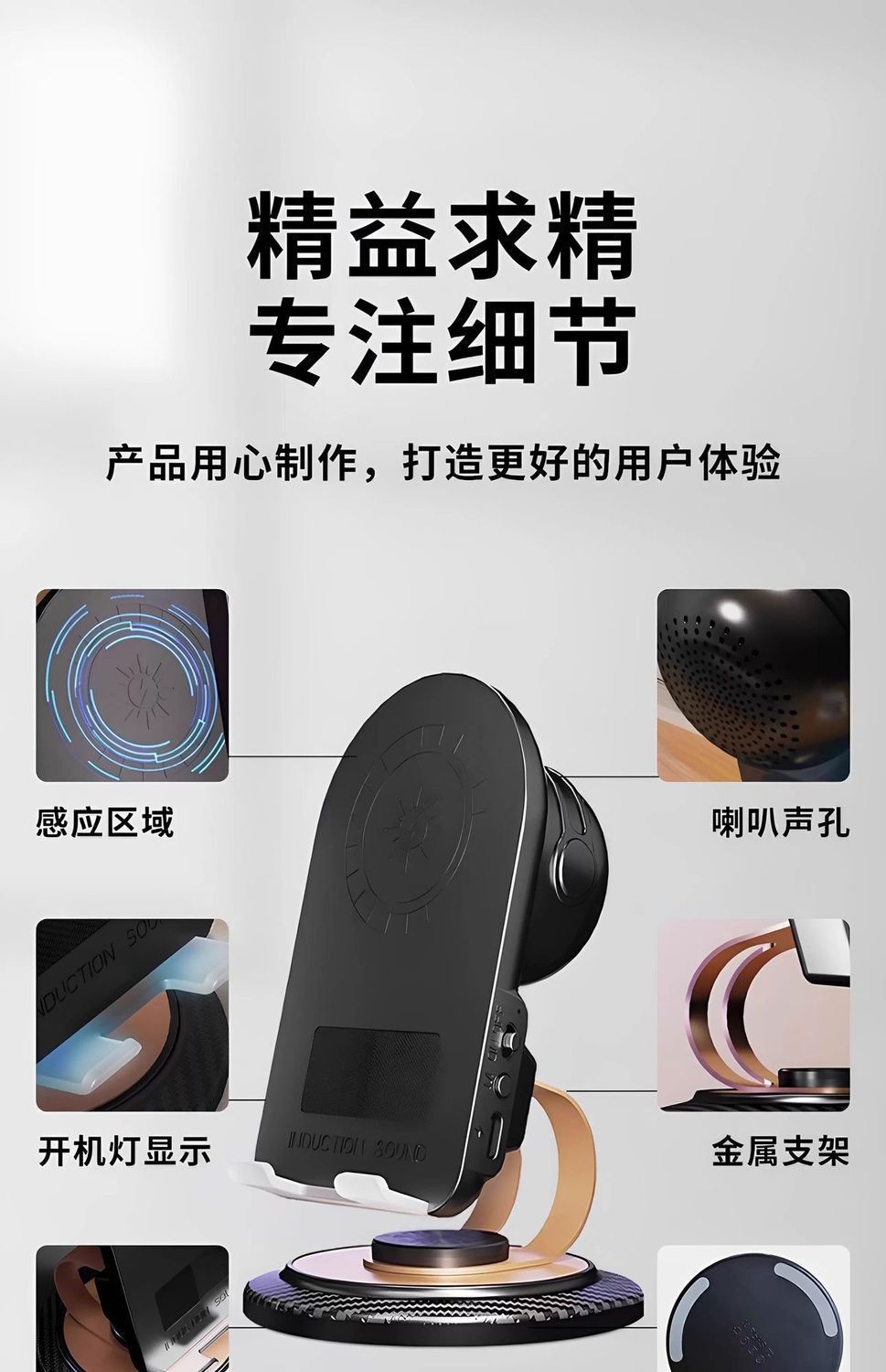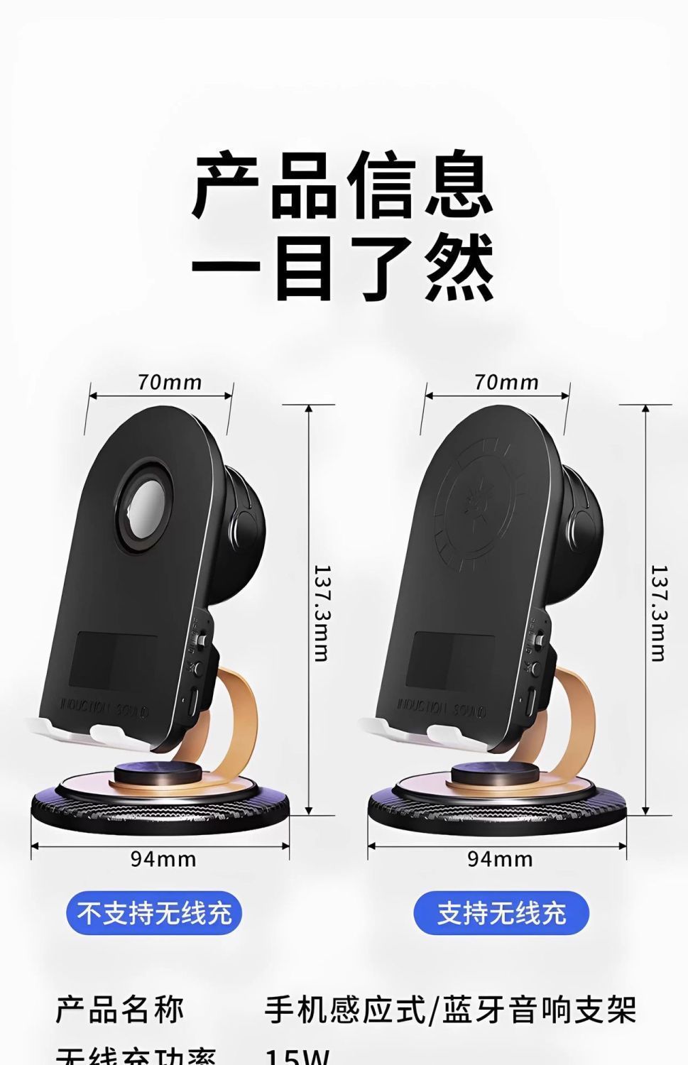 跨境优选智能无线感应音响手机支架一体360°桌面旋转便携扩音器