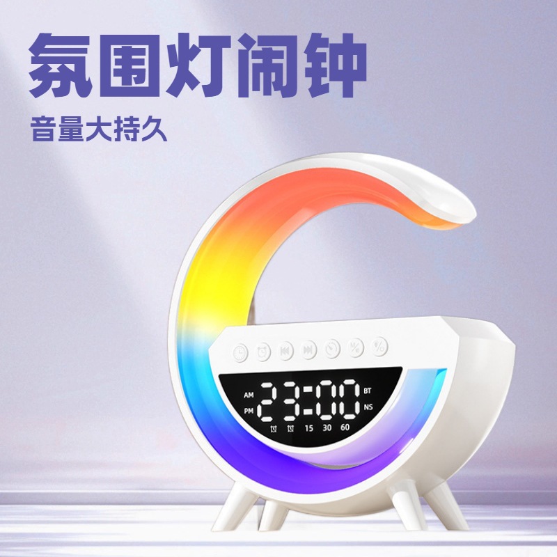 大G3401迷你跨境新款小G蓝牙音箱无线充闹钟氛围灯多功能音响桌面
