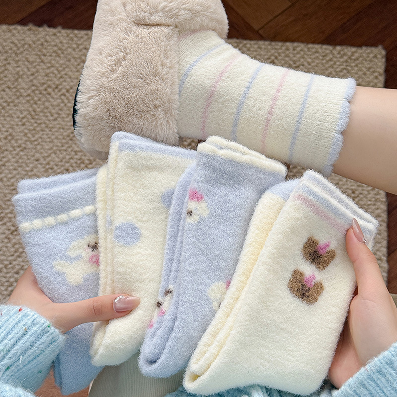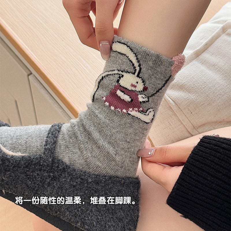 袜子秋冬加厚保暖绵羊毛柔软可爱气球小兔中筒袜韩系女厚款堆堆袜
