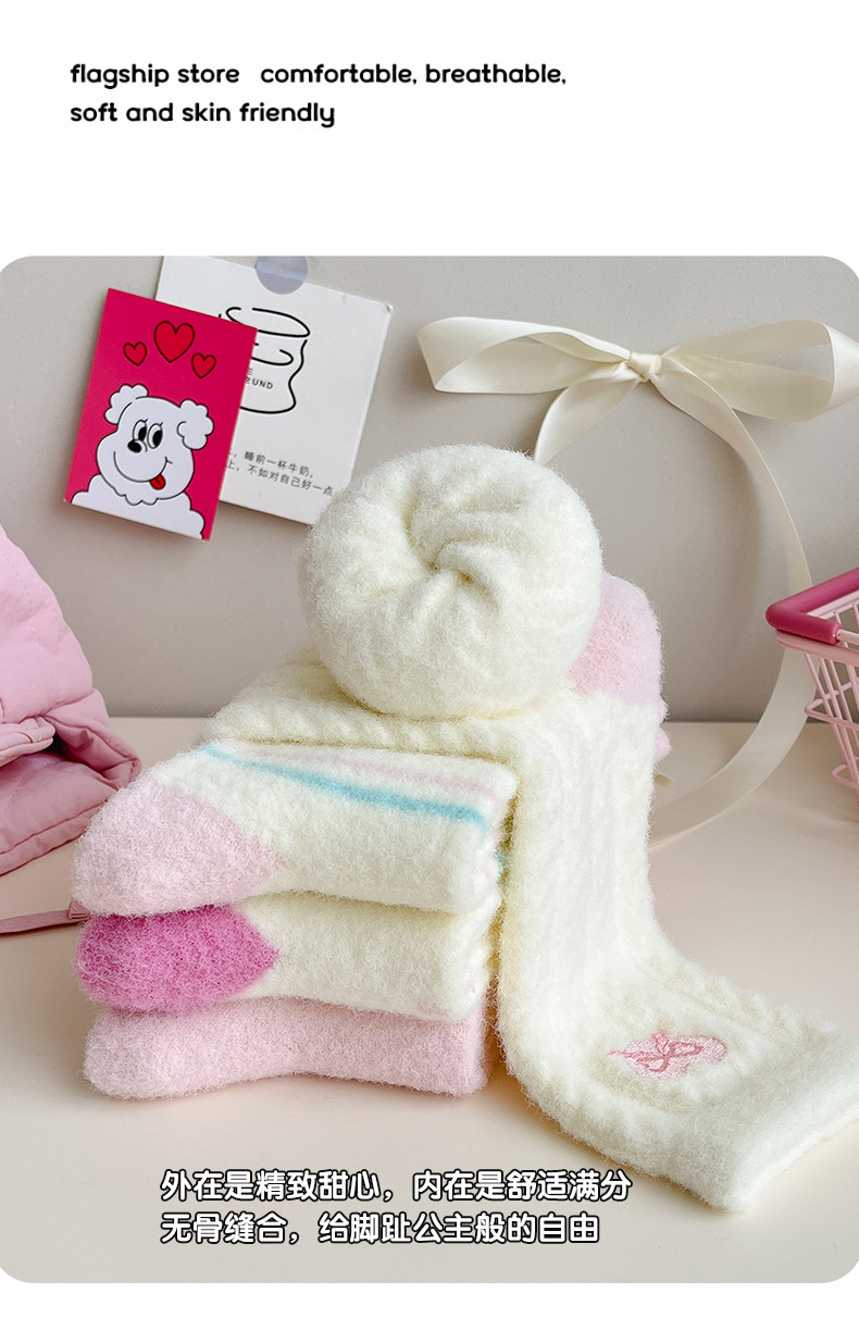 澳绒厚袜子女保暖加绒加厚中筒袜冬季月子袜秋冬款可爱软糯睡眠袜