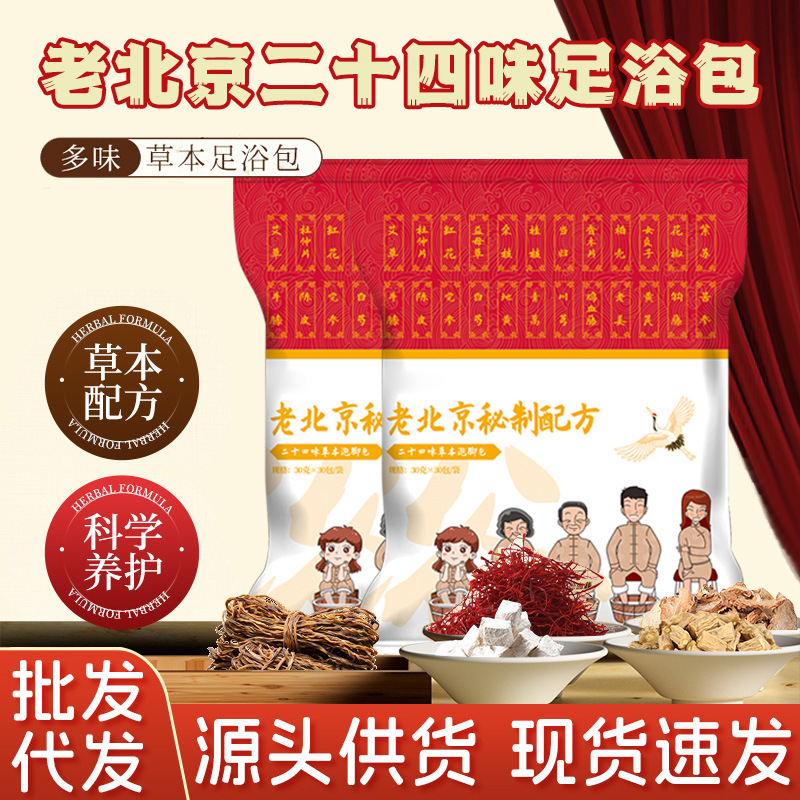 老北京秘制処方二十四味足浴包二十四味泡足包老姜紅花艾草泡足薬包